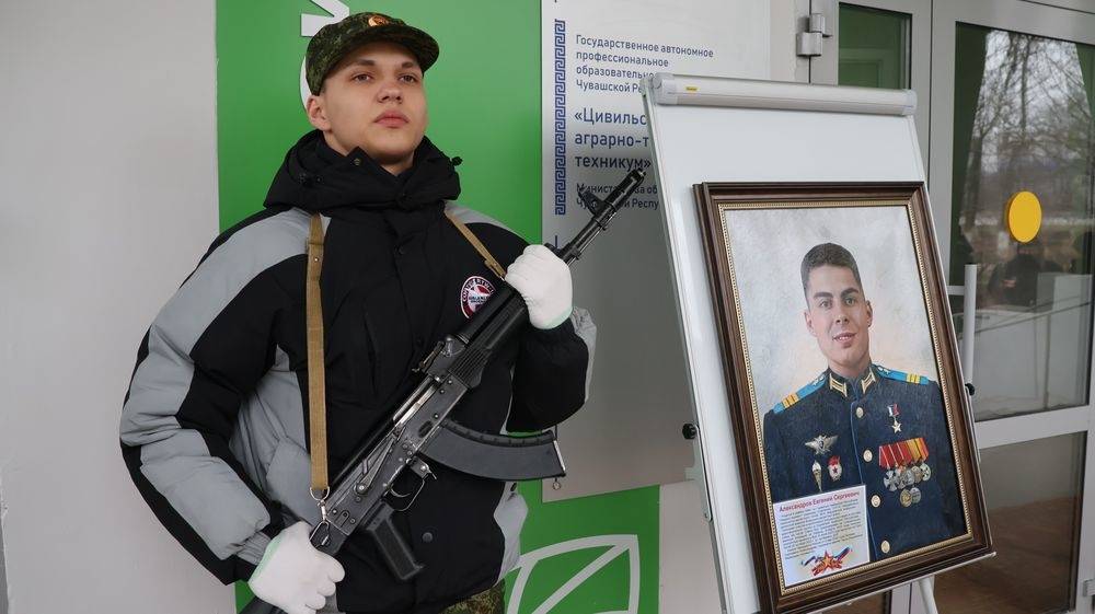 В Цивильске на здании аграрного техникума была торжественно открыта памятная доска гвардии сержанту, Герою России Евгению Сергеевичу Александрову.