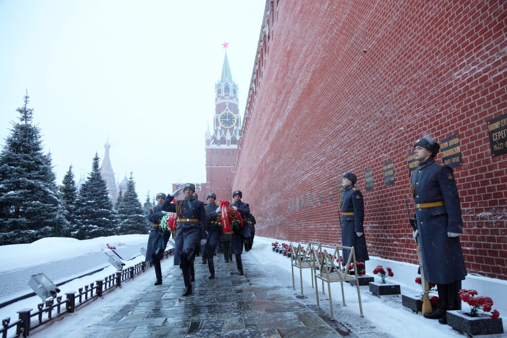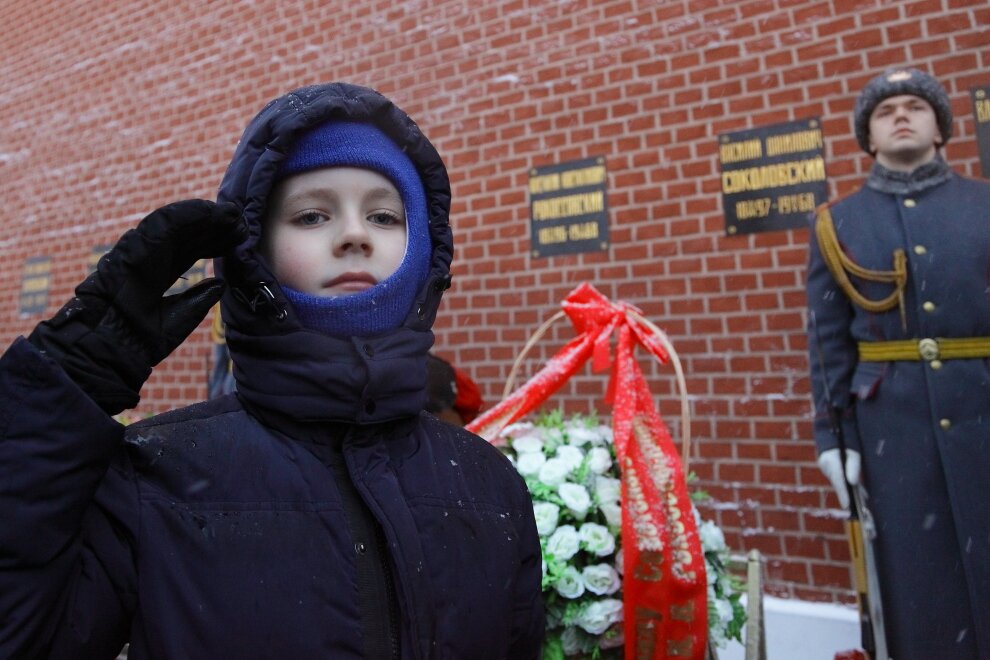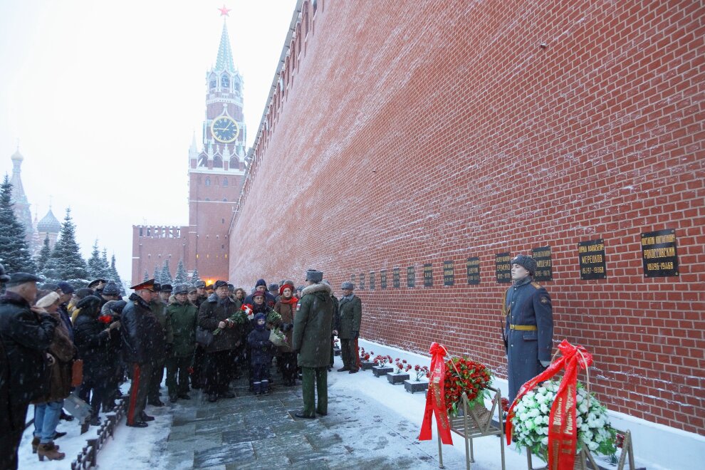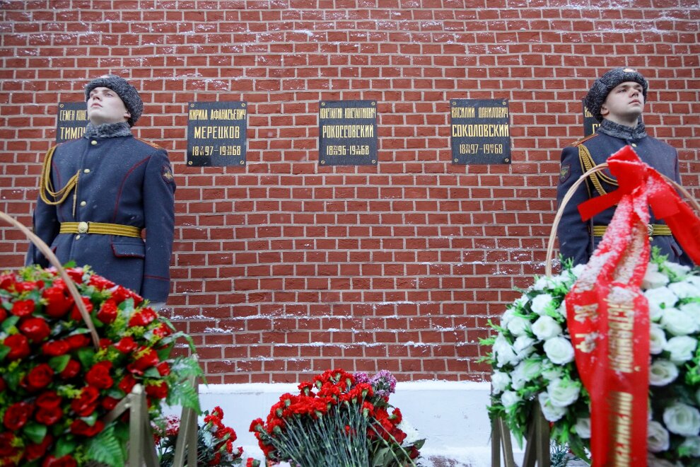 Сегодня утром состоялось торжественное возложение цветов к могиле Константина Рокоссовского у Кремлевской стены. Почтить его память приехали родственники, представители Министерства обороны Российской Федерации и Российского военно-исторического общества. Самым юным участником церемонии был сын правнучки военачальника Ариадны Рокоссовской – Юрий. В этот день звучали не только рассказы о боевом пути Константина Константиновича, но и семейные воспоминания.