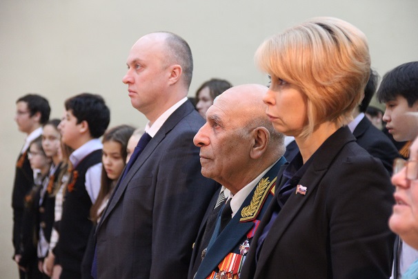 Одним из участников встречи стал руководитель Департамента международного сотрудничества, военно-исторического туризма и спорта РВИО Сергей Григорьев. Он рассказал учащимся о деятельности Российского военно-исторического общества, его истории, уходящей в начало ХХ века. Разговор шел также о героях военной истории нашей страны и необходимости увековечивания памяти о них. В частности, Сергей Григорьев рассказал о генерале Скобелеве, памятник которому открылся в этот же День Героев Отечества у Академии Генштаба Вооруженных Сил РФ. Большой интерес у детей вызвали проекты Российского военно-исторического общества, связанные с популяризацией военной истории и патриотическим воспитанием. Также во встрече приняли участие советский военачальник генерал-лейтенант в отставке Норат Григорьевич Тер-Григорьянц и ветеран Вооруженных Сил СССР, генерал-лейтенант Виктор Петрович Лелин.