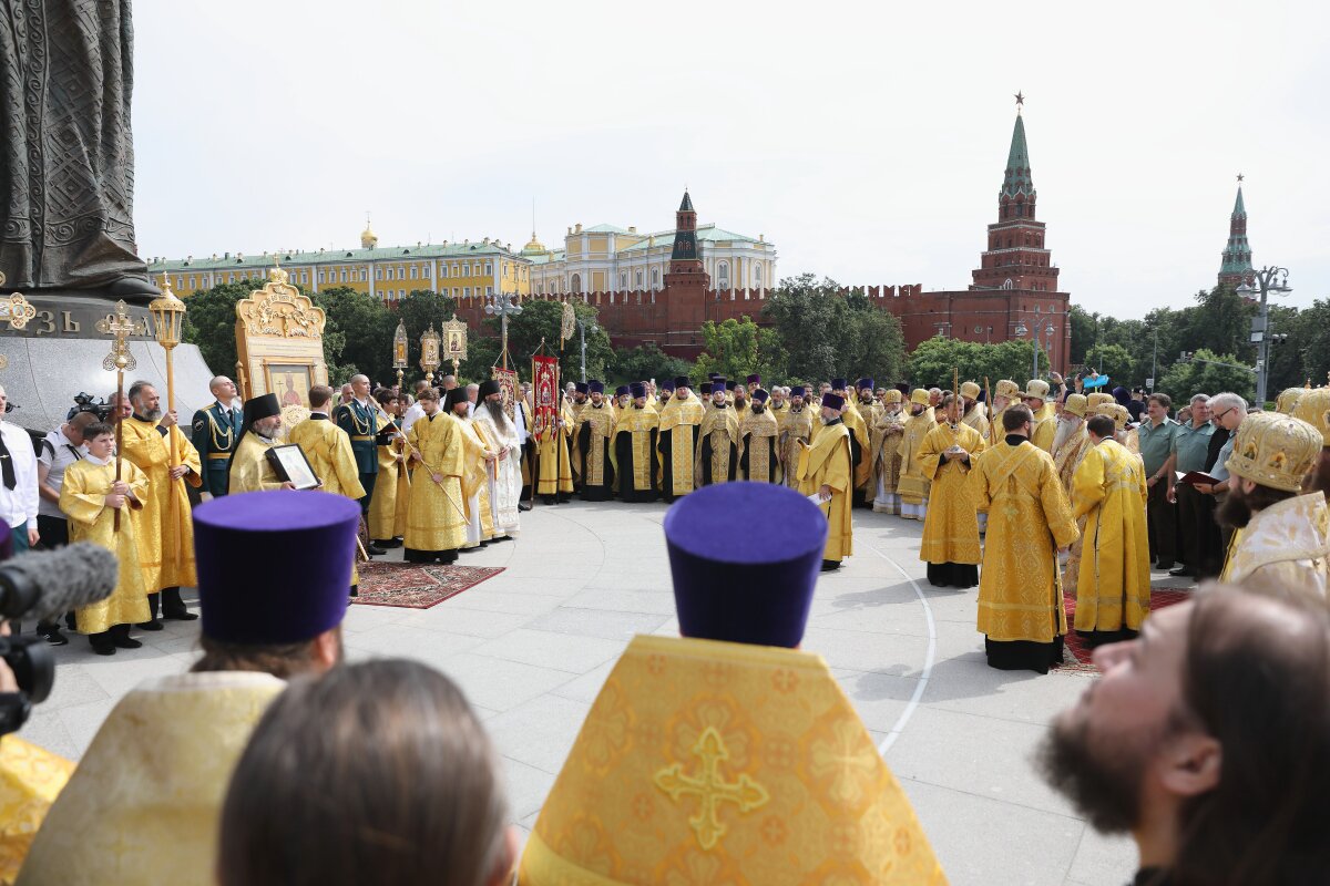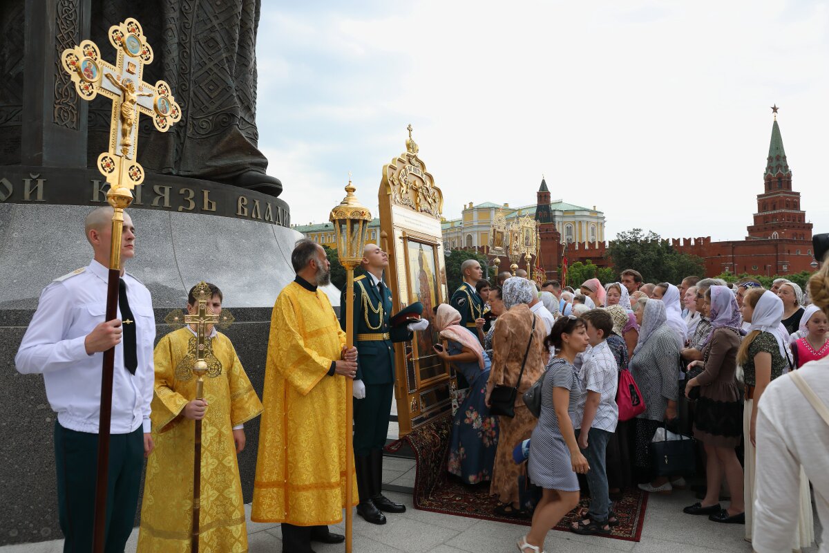 В День Крещения Руси и в день памяти святого равноапостольного князя Владимира состоялся крестный ход к памятнику святого князя Владимира на Боровицкой площади.