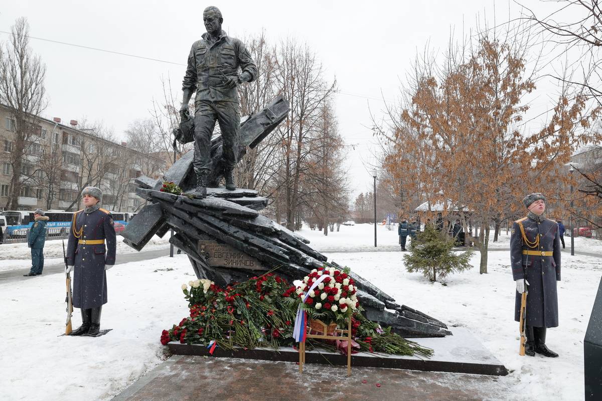 27 декабря в сквере Дмитрия Михайлика на Кременчугской улице в Москве состоялось торжественная церемония открытия памятника Герою России Евгению Зиничеву и возложение цветов к комплексу памятников «Пожарным и спасателям» и «Ветеранам МЧС России».