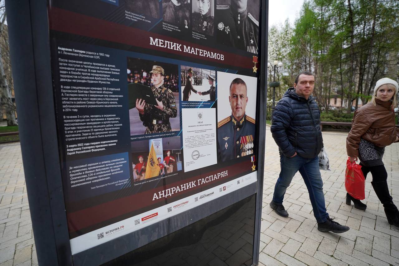 В центре Донецка, на бульваре Пушкина, открыта фотовыставка «ГЕРОИ и ПОДВИГИ», посвященная участникам Великой Отечественной войны и Специальной военной операции