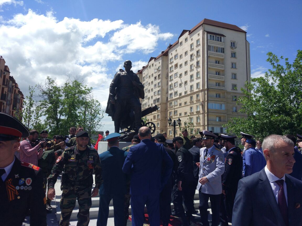 В торжественной церемонии открытия приняли участие глава Чеченской Республики Рамзан Кадыров, первый заместитель министра РФ по делам Северного Кавказа Одес Байсултанов, депутат Госдумы РФ Адам Делимханов, спикер Парламента ЧР Магомед Даудов, Председатель Правительства ЧР Абубакар Эдельгериев, министр культуры ЧР Хож-Бауди Дааев, мэр Грозного Муслим Хучиев, Исполнительный директор Российского военно-исторического общества Владислав Кононов, скульптор Андрей Коробцов, архитектор Константин Фомин, ветераны и труженики тыла ВОВ, представители правоохранительных и силовых структур.