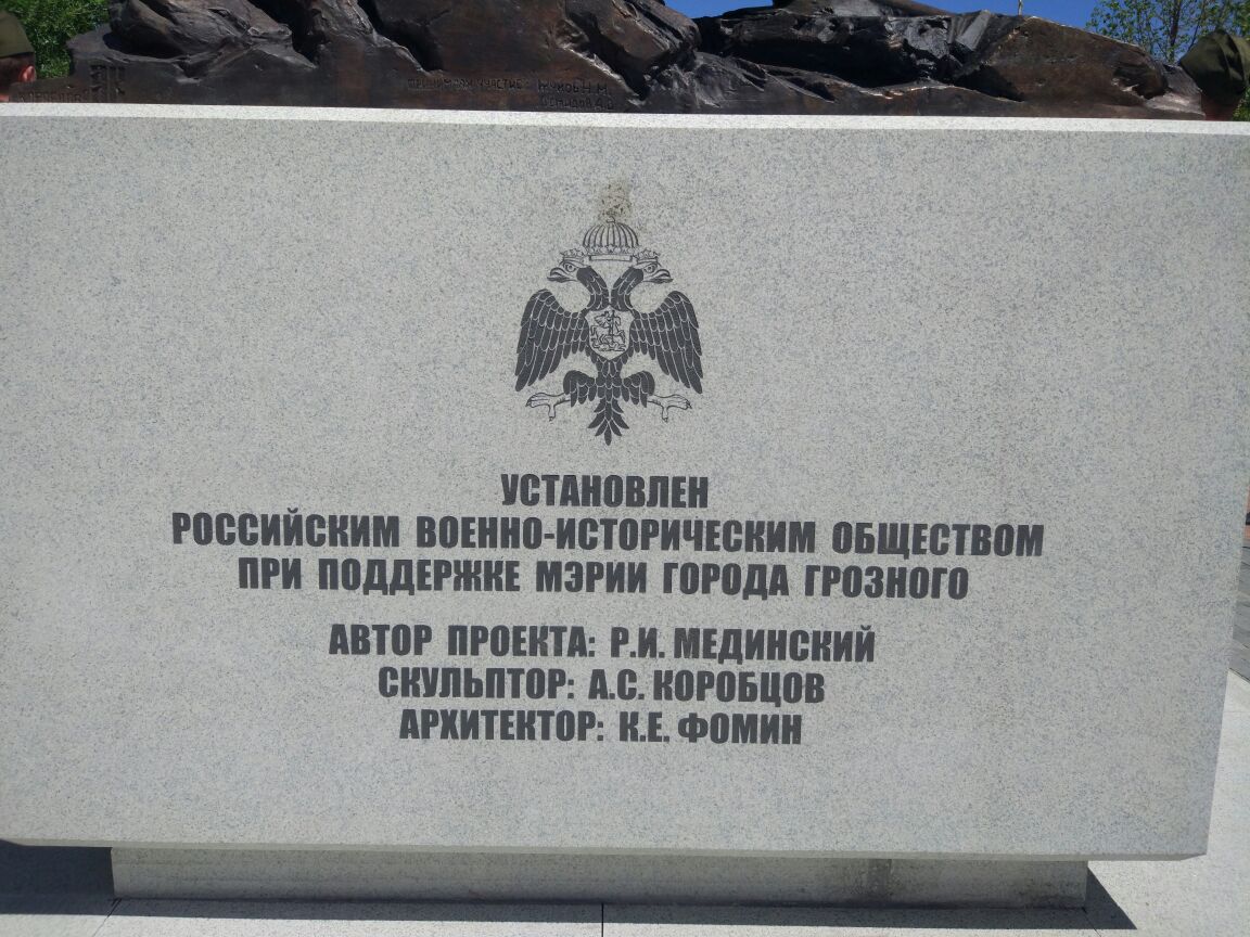 Бронзовый памятник высотой 260 см создан скульптором Андреем Коробцовым и архитектором Константином Фоминым по проекту Советника Председателя РВИО Ростислава Мединского. Скульптура установлена в Грозном, в сквере на пересечении Проспекта Ахмата Кадырова и улицы Виктора Кан-Калика.