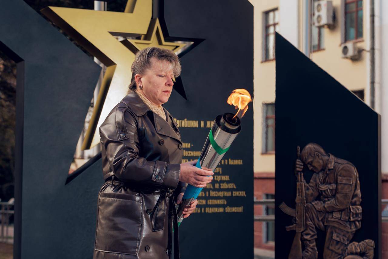 Право зажечь памятный огонь было предоставлено Елене Одаевой, матери лейтенанта Александра Одаева, выпускника Военного учебного центра. Офицер погиб при исполнении воинского долга в зоне Специальной военной операции и был награждён орденом Мужества.