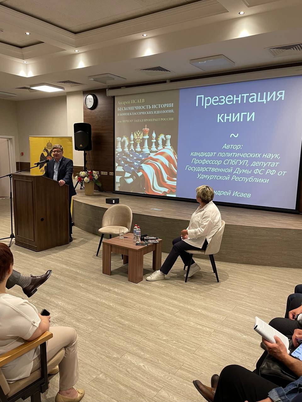 При поддержке регионального отделения РВИО в Удмуртии в Ижевске прошла презентация книги депутата Государственной Думы РФ, кандидата политических наук Андрея Исаева "Бесконечность истории и конец классических идеологий, или почему Запад проиграет России"