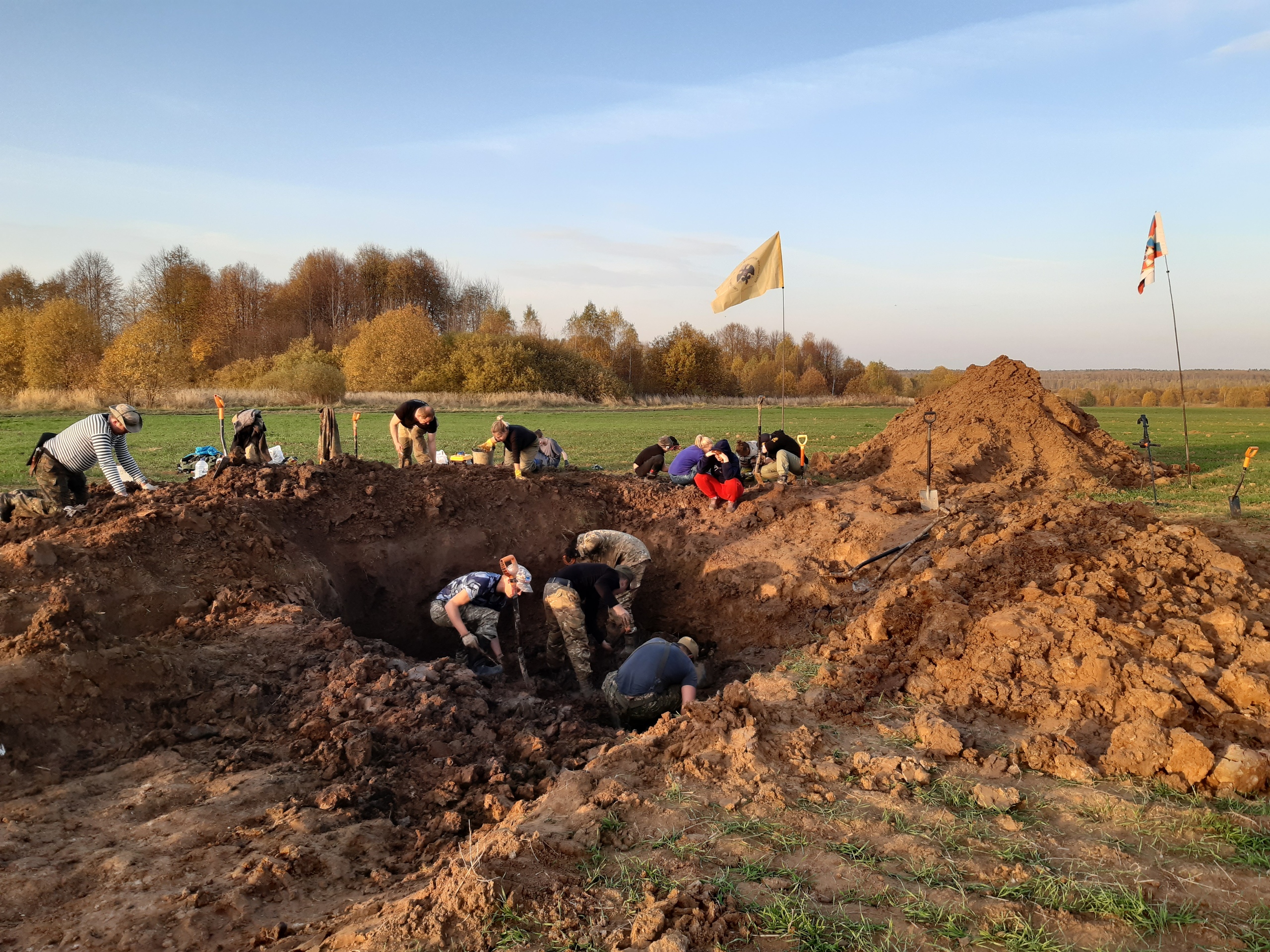 Основной этап полевых работ проходил 9 по 12 октября 2020 года. Ранее в базе данных удалось найти именной список на 116 погибших солдат 112-й Мотострелковой бригады и схему расположения захоронения у д. Ольхи. Эта информация и стала началом дальнейшей работы по её поиску. Район для проведения поисковых работ был максимально точно определён, благодаря предварительной работе участников ВПК «Прорыв» с архивными документами.