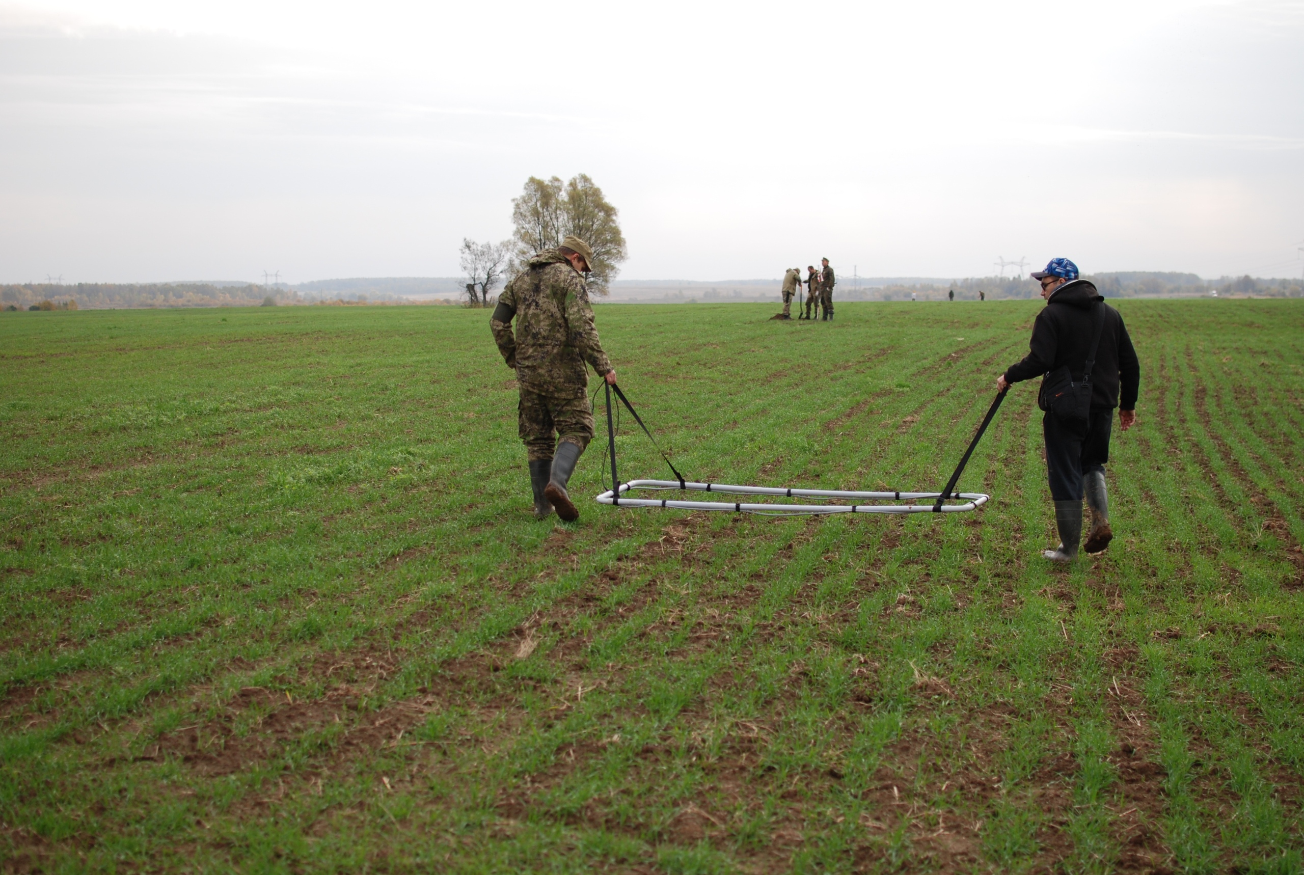 - Было установлено, что 9 февраля 1942 года, по приказу командования три стрелковые роты 112 МСБ атаковали позиции немцев в окрестностях деревни Ольхи. Нашим солдатам не удалось выбить немцев из деревни, понеся большие потери от пулемётно-миномётного огня немцев, они вернулись на исходные позиции. В настоящее время на месте предполагаемого захоронения находится частное хозяйство, поле на котором уже взошли озимые. Несмотря на это, хозяин данной территории Владимир Владимирович Горин, поддержал нас и дал разрешение обследовать территорию. В работе был применен новый глубинный металлодетектор «Сварог» в связи с тем, что останки солдат и металлические предметы находились на глубине более 1,5 метров. Когда место и границы захоронения были определены, к нам на помощь пришёл управляющий хозяйством Виталий Расторгуев, который помог в проведении раскопа, - рассказал Антон Качанов.