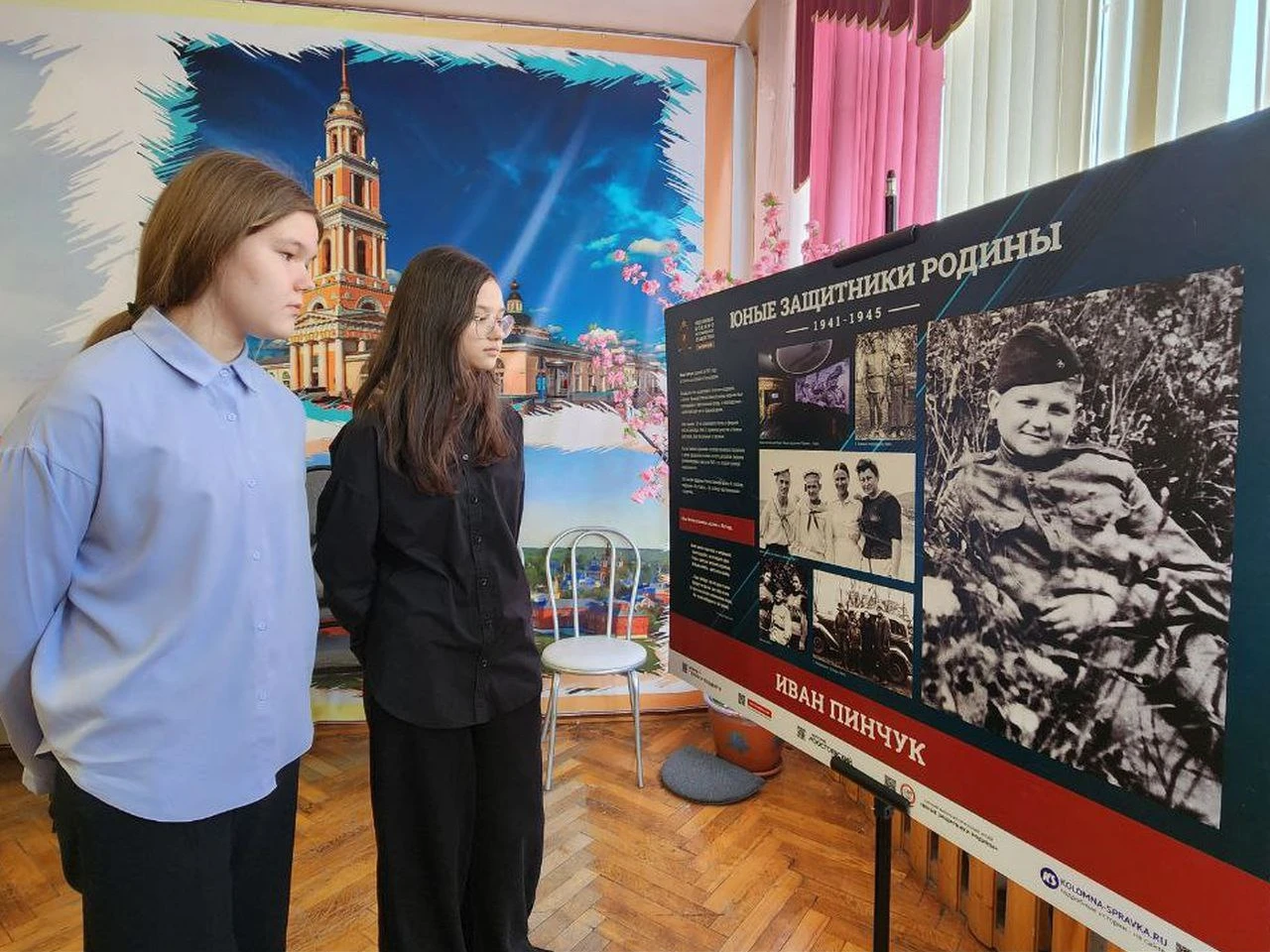 На информационных стендах представлены 19 биографий детей и подростков, которые, несмотря на свой юный возраст, совершали подвиги, достойные высоких государственных наград. Например, Володе Тарновскому было 11 лет, когда началась война. Отец погиб на фронте, маму расстреляли фашисты. Мальчик попросился с солдатами на фронт, стал бойцом 370-го артиллерийского полка. Юный Герой отличился при форсировании Днепра - под огнем переплывал реку, чтобы доставить нашим бойцам боеприпасы. Принимал участие в освобождении Украины, Молдавии, Польши, дошел до Берлина.
