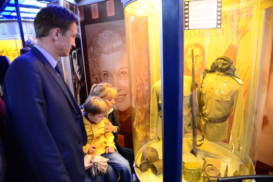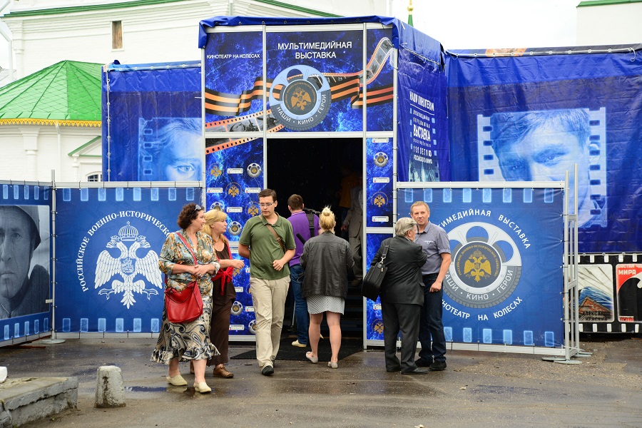 Выставка, созданная в рамках Года российского кино, сочетает в себе музей и передвижной кинотеатр.В репертуаре - ленты, посвящённые Первой мировой и Великой Отечественной войнам. Выставка напомнит зрителям об артистах-фронтовиках, на чьих фильмах воспитывалось ни одно поколение («А зори здесь тихие», «В бой идут одни старики», «Адмирал Нахимов»).