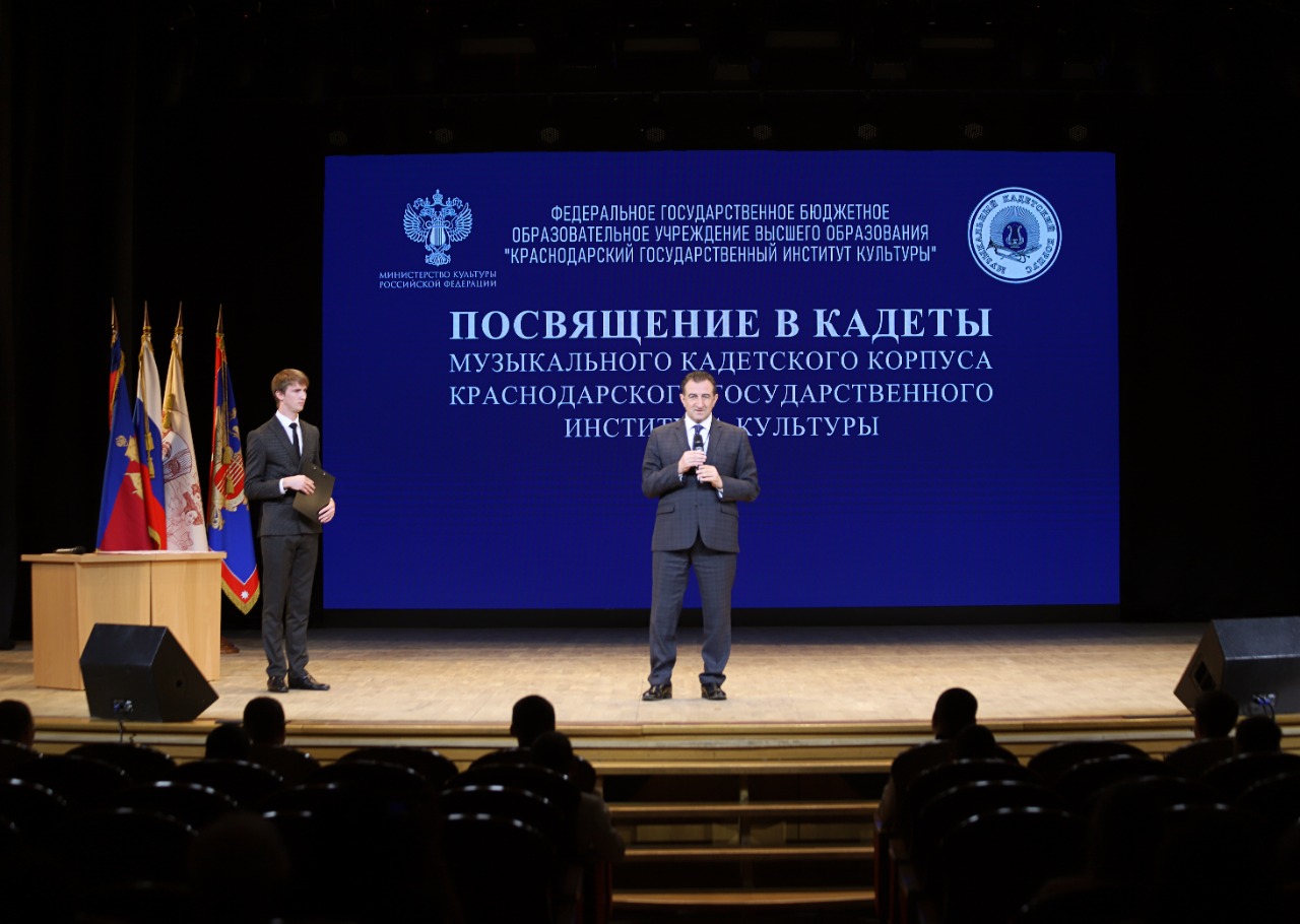 Открыл церемонию посвящения ректор Краснодарского государственного института культуры, председатель КРО РВИО Сергей Зенгин. Он отметил, что "в нашей стране уникальная традиция кадетского музыкального образования. Выпускники кадетских корпусов внесли значительный вклад в развитие российской культуры, дипломатии, политики". Также он подчеркнул, что кадетские корпуса воспитывают настоящих граждан своей страны в духе благородства, воинской чести, доброго товарищества, крепкой дисциплины и беззаветной любви и преданности Родине. Возрождение кадетского движения в России, воспитание всесторонне развитых молодых людей, умеющих ценить и продолжать лучшие традиции Отечества, – признак духовного обновления страны.
