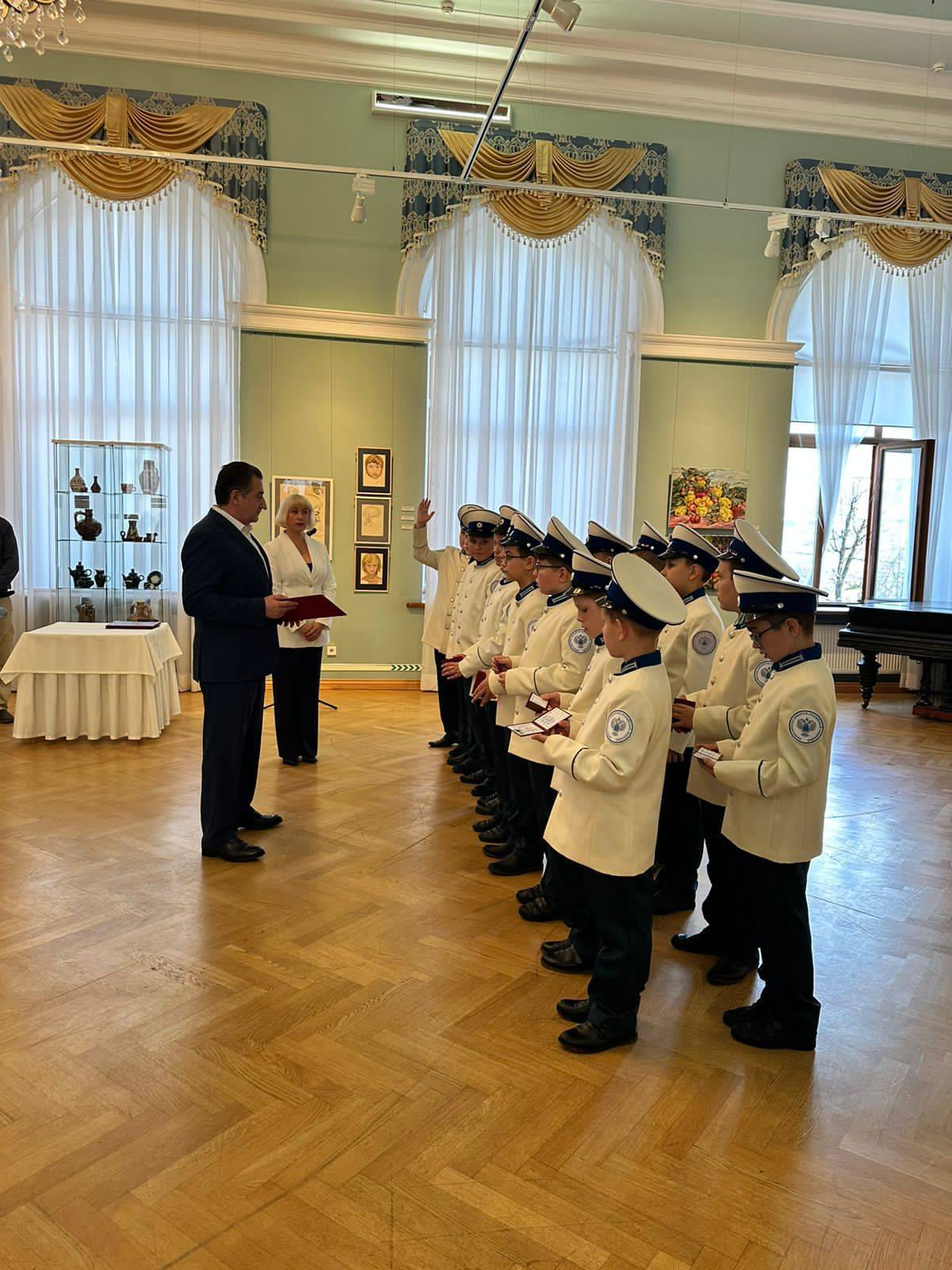 Сегодня в Краснодарском краевом художественном музее имени Коваленко прошла торжественная церемония посвящения в кадеты Музыкального кадетского корпуса имени Александра Невского, приуроченная к Всероссийской акции «День в музее для российских кадет».