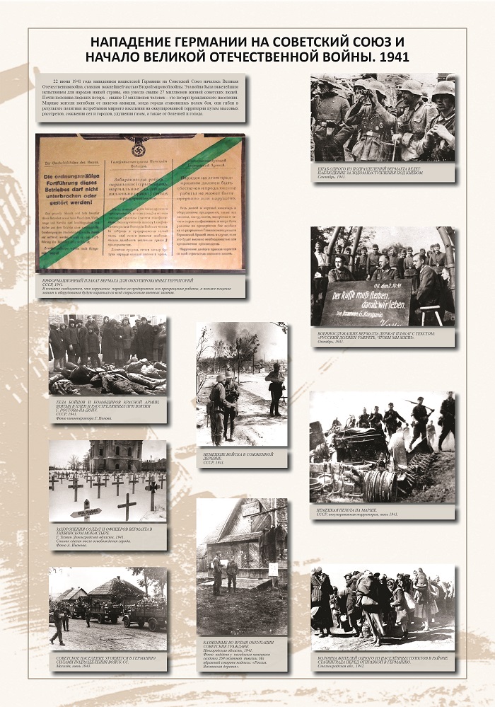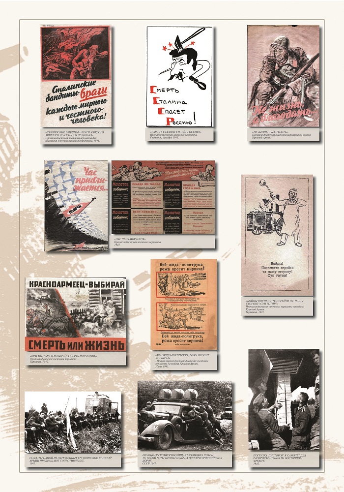 Предваряют рассказ о советских военнопленных материалы о пропаганде вермахта в войсках Красной Армии и на оккупированных территориях нашей страны. Листовки, плакаты и фотографии, представленные на выставке, позволяют зрителю лучше понять сущность нацистской идеологии.