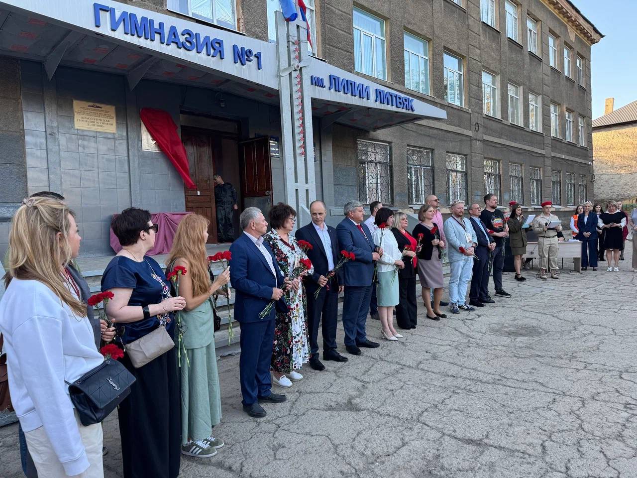 В Красном Луче на фасаде гимназии №1 была открыта мемориальная доска в память о летчице, Герое Советского Союза Лидии Владимировне Литвяк. Мероприятие состоялось в рамках просветительского десанта Российского военно-исторического общества в Луганскую Народную Республику.