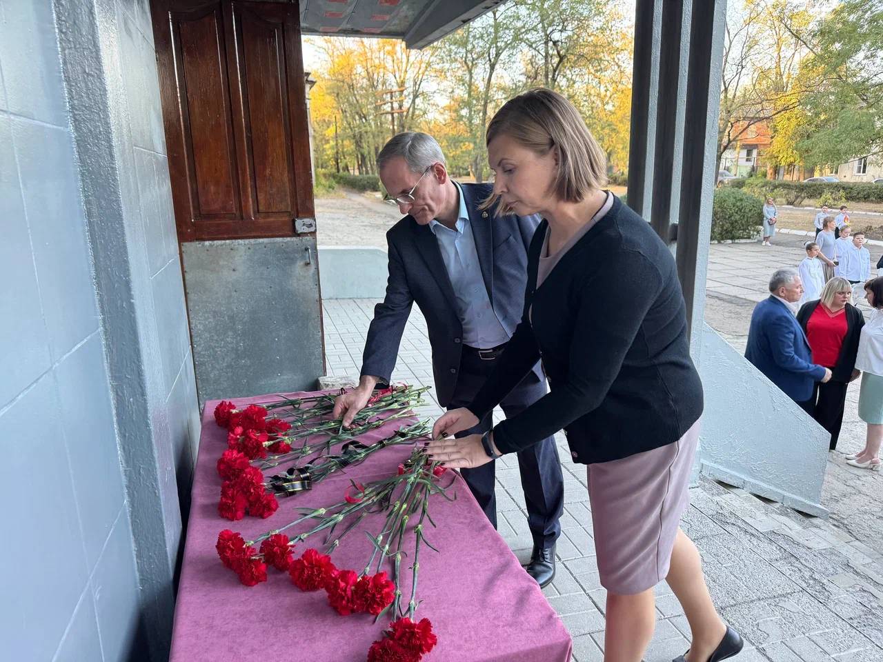 В торжественной церемонии приняли участие: заместитель начальника Управления Президента РФ по государственной политике в гуманитарной сфере, заместитель Председателя РВИО Николай Овсиенко, директор гимназии Елена Вальчук, а также преподаватели и учащиеся гимназии.