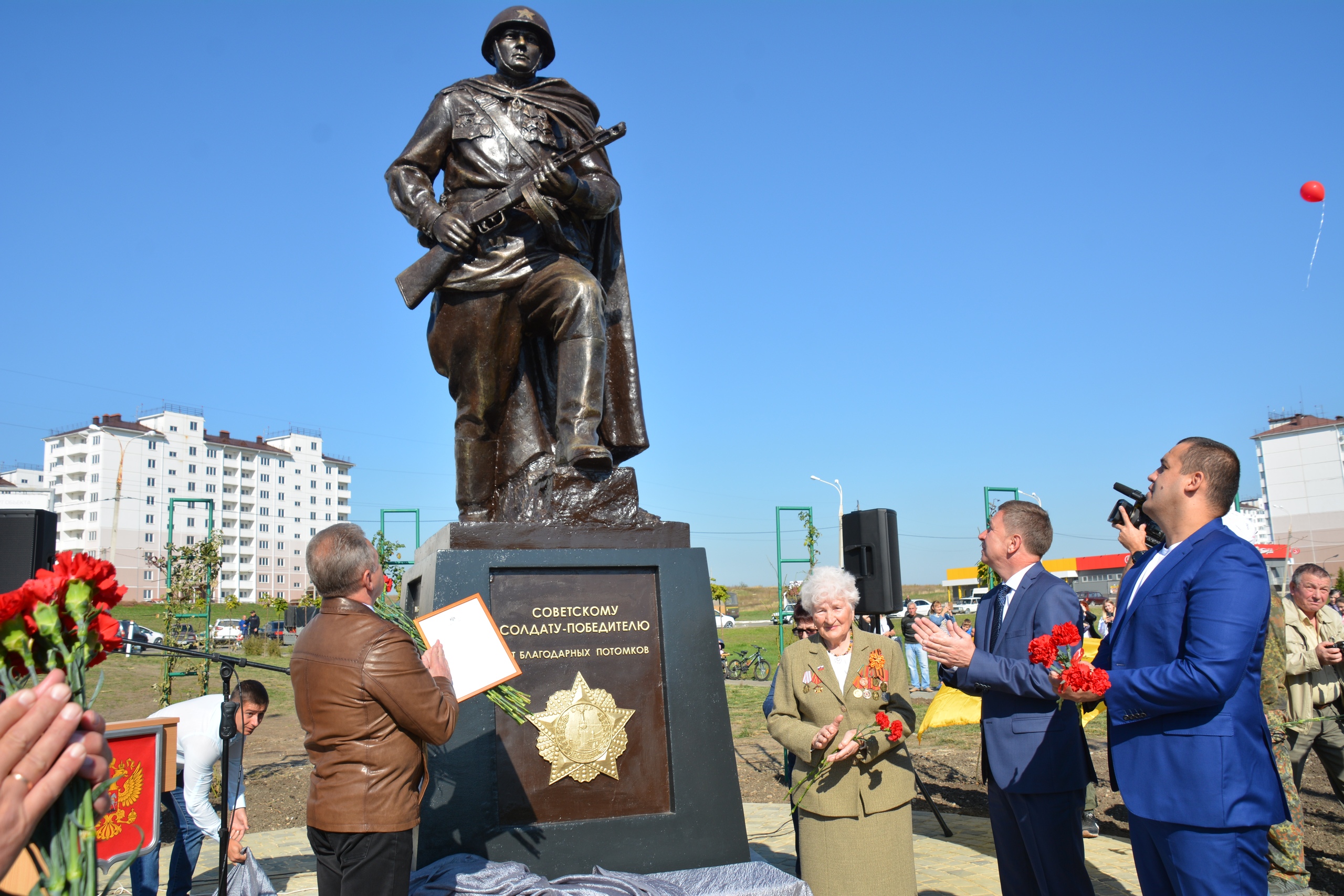 К 75-летию освобождения Краснодарского края от немецко-фашистских захватчиков Российское военно-историческое общество установило в Крымске памятник Советскому Солдату-Победителю.