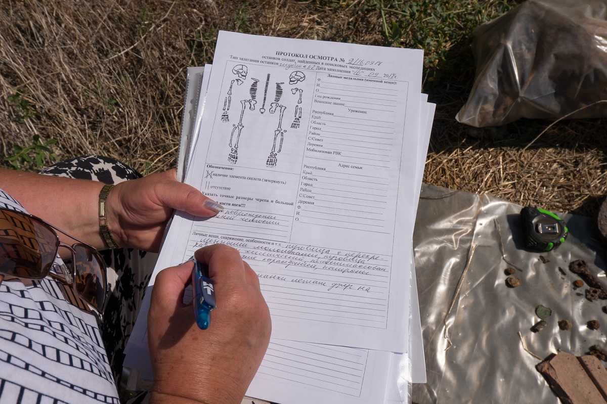 За первые два дня поисковых работ обнаружены останки 12 бойцов. Вместе с останками подняты советские монеты, химические карандаши, мундштук, ключ с фрагментом военно-морской формы, найдены шевроны старшего лейтенанта. Работы ведутся на крутом склоне, что в значительной мере осложняет поиск.