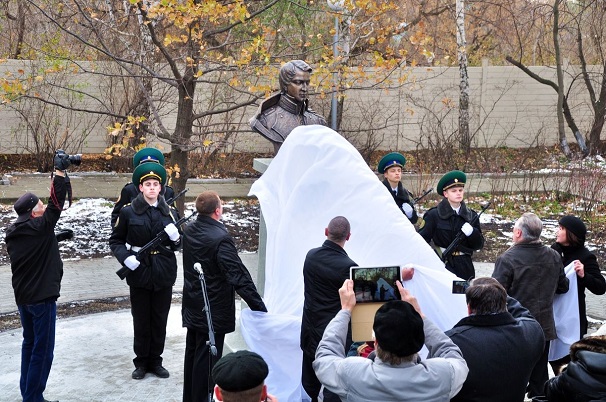 Отлил бюст екатеринбургский мастер Иван Дубровин по эскизу Курганского скульптора Ольги Красношеиной. Кроме почетного караула, открытие мемориала сопровождала живая музыка в исполнении городского духового оркестра (дирижер Михаил Мишуков). Солистка областной филармонии Оксана Иванова исполнила песню «Генералам 1812 года» из кинофильма «О бедном гусаре замолвите слово».