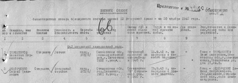 1) Лётчик старшина Терещенков Валентин Маркелович, 1920 г.р., Смоленская обл. https://obd-memorial.ru/html/info.htm?id=53085298