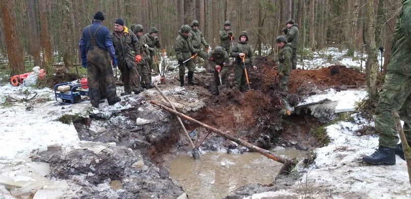 Отряд спецпоиска «Крылья Родины» при поддержке Вологодского отделения РВИО совместно с военнослужащими 90 Отдельного специального поискового батальона Западного военного округа обследовал место падения советского штурмовика Ил-2 в районе Синявинских высот.