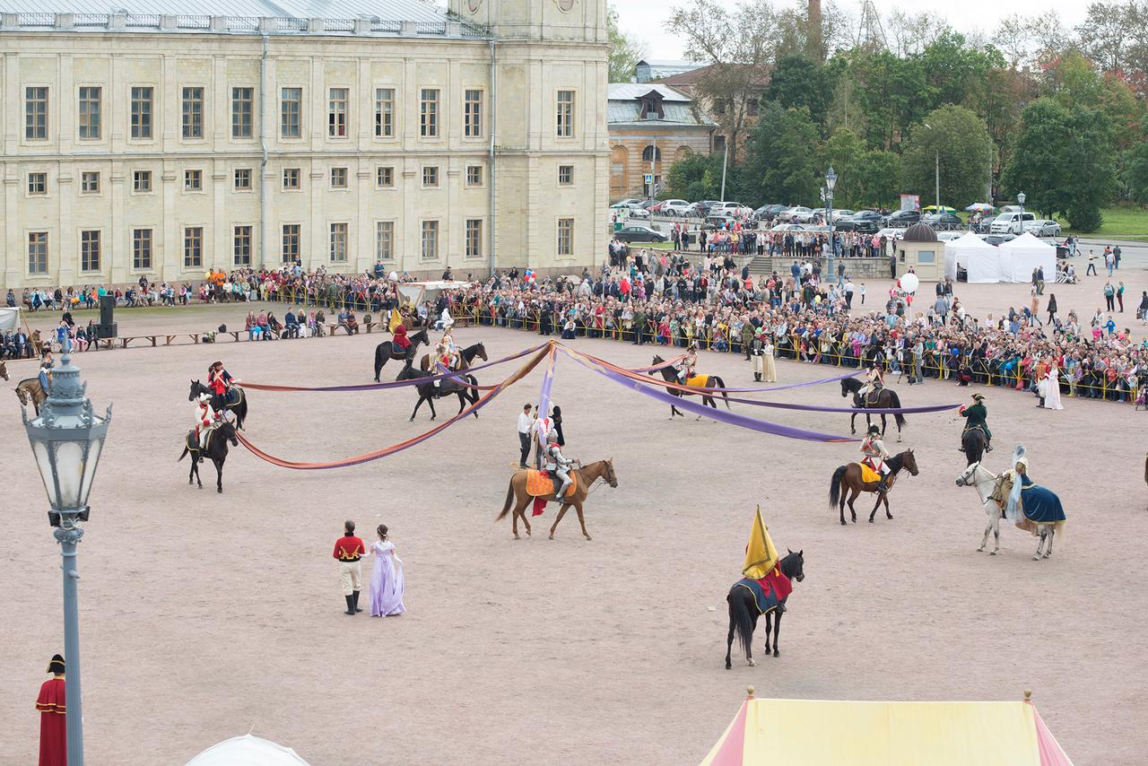 В первый день работы фестиваля мероприятия посвящены в основном историческому периоду, охватывающему XVIII-XIX века. Мероприятия началось с торжественного парада участников разных эпох перед Гатчинским дворцом, а после, на плацу прошла реконструкция событий XVIII века, эпохи Екатерины II и Павла I. Далее гостей ждали театрализованное конное шествие - «кавалькада», выставка костюмов века, мастер-классы военного дела и старинные игры.