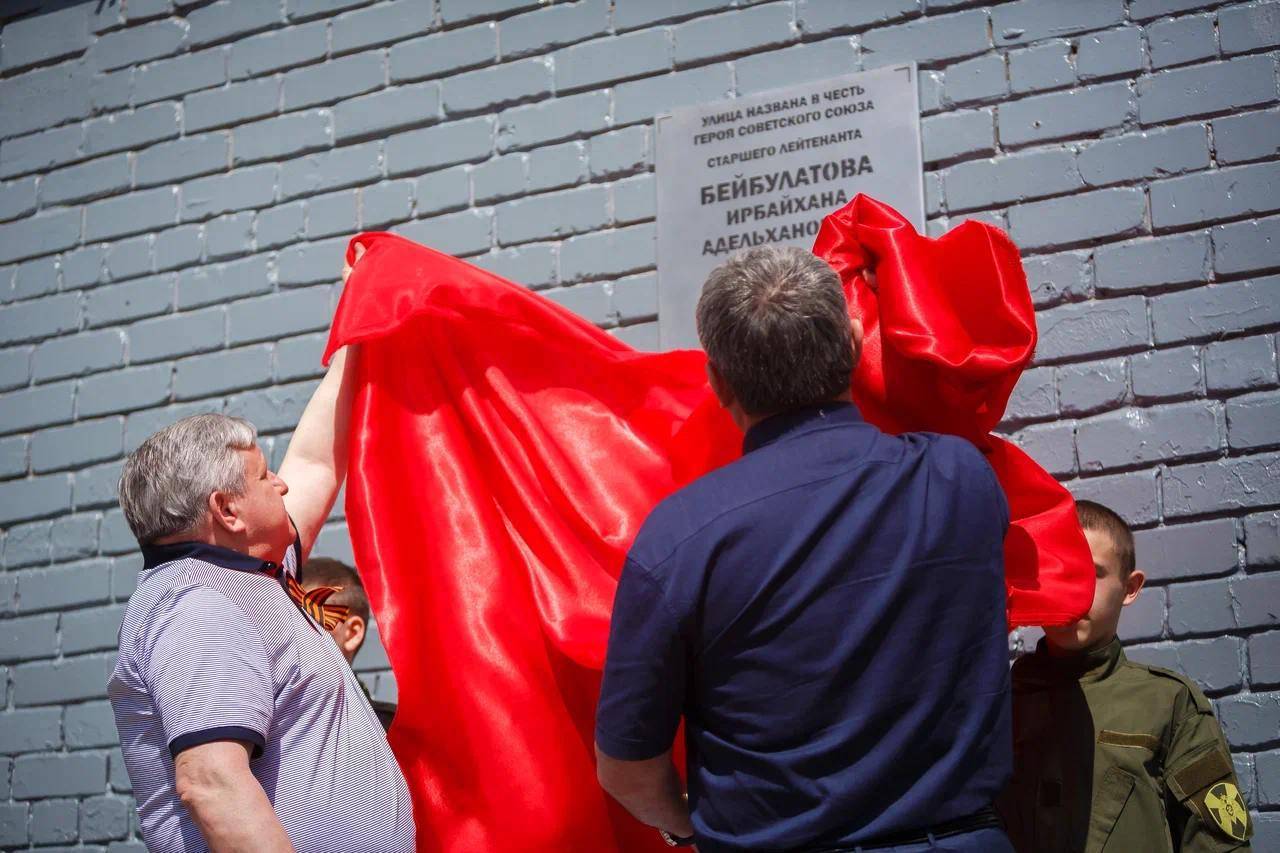 В Мелитополе при поддержке Российского военно-исторического общества была открыта памятная доска Герою Советского Союза, участнику Великой Отечественной войны Ирбайхану Адельхановичу Бейбулатову. Мемориальный знак установлен на улице, названной в его честь.