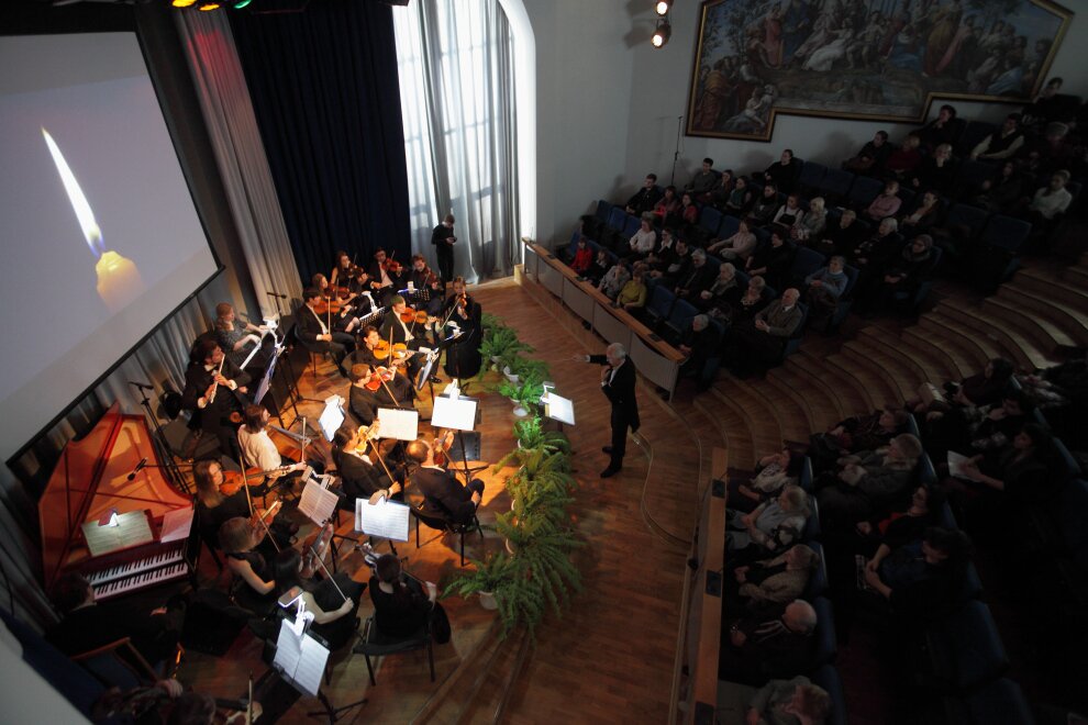После минуты молчания все собравшиеся возложили цветы к мемориальной доске. В этот момент звучала фонограмма песни «Соловьи» в исполнении Академического ансамбля песни и пляски Российской Армии имени А.В. Александрова. Завершил церемонию концерт-реквием творческих коллективов и исполнителей Московского государственного института культуры.