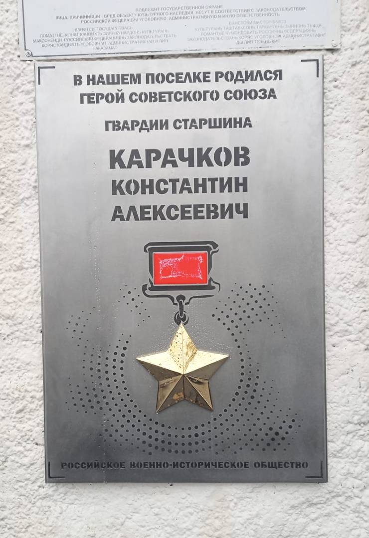 Памятный знак Герою Советского Союза Константину Карачкову установлен Российским военно-историческим обществом при поддержке партии «Единая Россия». На данный момент усилиями Общества в регионе открыто уже 70 памятных досок Героям Советского Союза и полным кавалерам ордена Славы.
