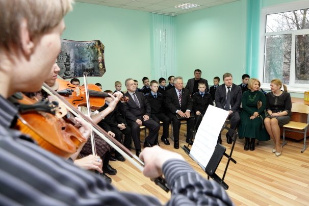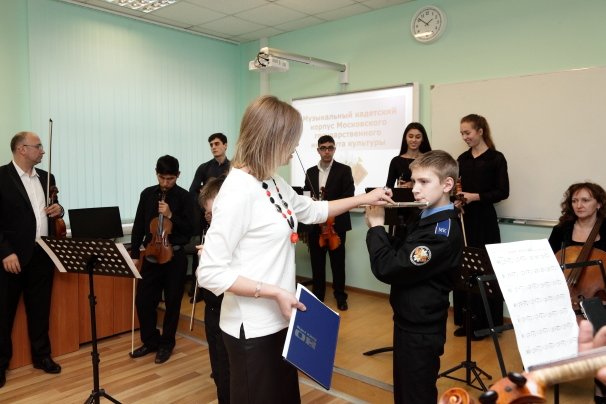Кроме того, Ростислав Мединский навестил подопечных РВИО - юных кадетов Музыкального Кадетского Корпуса при Институте Культуры. В сентябре, в День знаний Первый Музыкальный Кадетский Корпус при Московском Государственном Институте Культуры открывал Министр культуры РФ. Спустя три месяца ребята освоились в стенах ВУЗа, окрепли. Для кадетов отведена отдельная часть здания под музыкальные классы, лингвистический кабинет, комнату отдыха. Ребята с энтузиазмом осваивают игру на духовых музыкальных инструментах, вокал, штудируют иностранные языки, изучают историю и культуру стран мира, основы военной подготовки. За это время юные музыканты успели принять участие в торжественном концерте в Государственном Кремлёвском дворце в честь 85-летия МГИК.