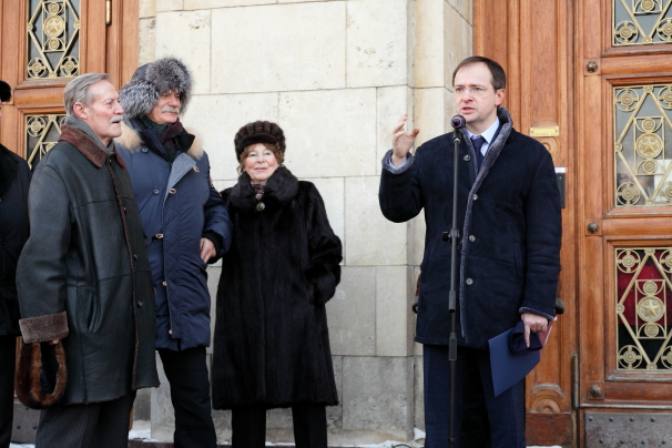 - Сегодня действительно памятный день. Мы открываем мемориальную доску, на доме где замечательный человек прожил почти 20 лет. Когда к нам обратился Юрий Мефодьевич и Никита Сергеевич от имени Малого театра и кинематографистов, мы сразу занялись этим вопросом. Потому что Евгений Яковлевич Весник не только замечательный актер, автор множества книг, преподаватель, плюс ко всему он боевой офицер, прошедший всю войну командиром артиллерийского взвода первой гвардейской артиллерийской бригады, награжденный многими боевыми орденами и наградами. Поэтому Российское военно-историческое общество постаралось установить доску максимально быстро, - сказал Председатель РВИО, Министр культуры Российской Федерации Владимир Мединский