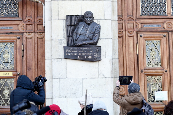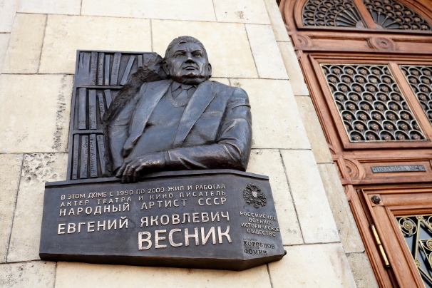 В рамках Года российского кино сегодня в Москве состоялось торжественное открытие мемориальной доски народному артисту СССР Евгению Веснику. Памятный знак появился по адресу Кудринская площадь, дом 1, где он жил и работал с 1990 по 2009 годы.
