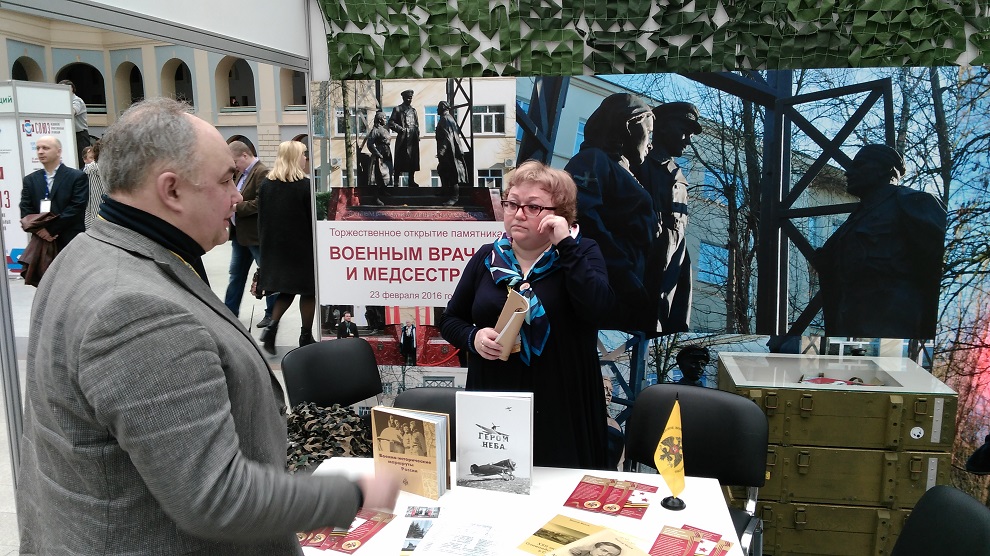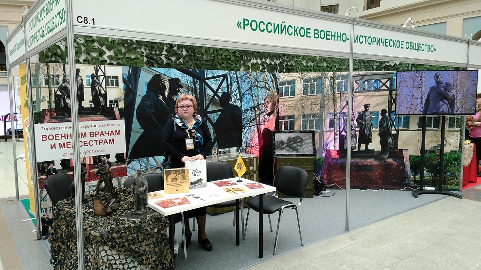 Экспозиция стенда Российского военно-исторического общества посвящена военным медикам. Напомним, что 23 февраля 2016 года, Председатель РВИО, Министр культуры Российской Федерации Владимир Мединский, Министр здравоохранения Российской Федерации Вероника Скворцова и губернатор Московской области Андрей Воробьев открыли памятник «Военным врачам и медицинским сестрам» в Московском государственном институте культуры (МГИК).