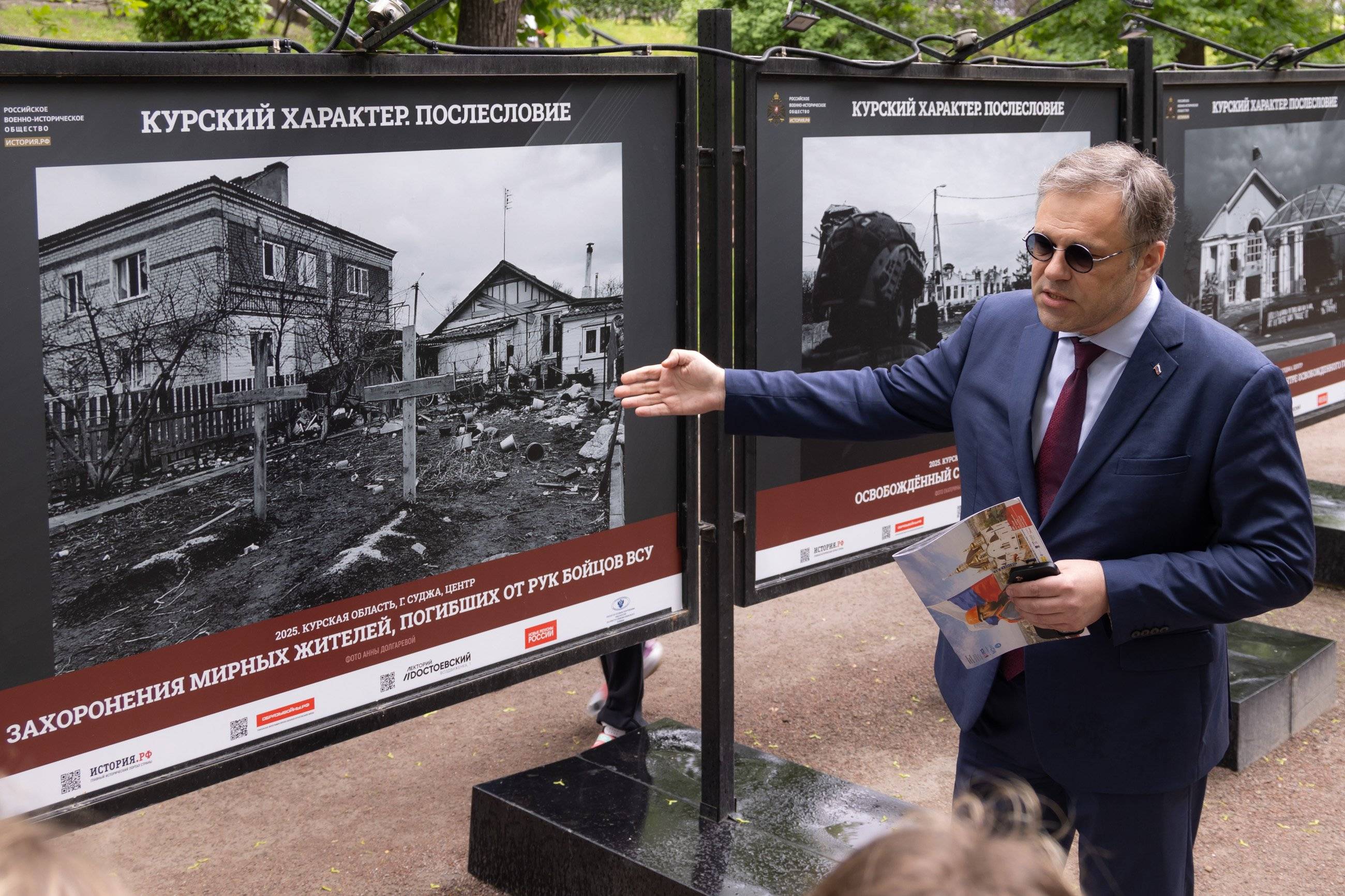 - В октябре 2024 года мы открывали первую нашу выставку, которая называлась просто и коротко «Курский характер». Мы показали то, что произошло в августе 2024 года на Курской земле. Сегодня мы подводим некий эпилог. Показываем то, что уже произошло и будет происходить дальше – полное и безоговорочное освобождение нашей земли от украинских националистов, - отметил Сергей Венявский.