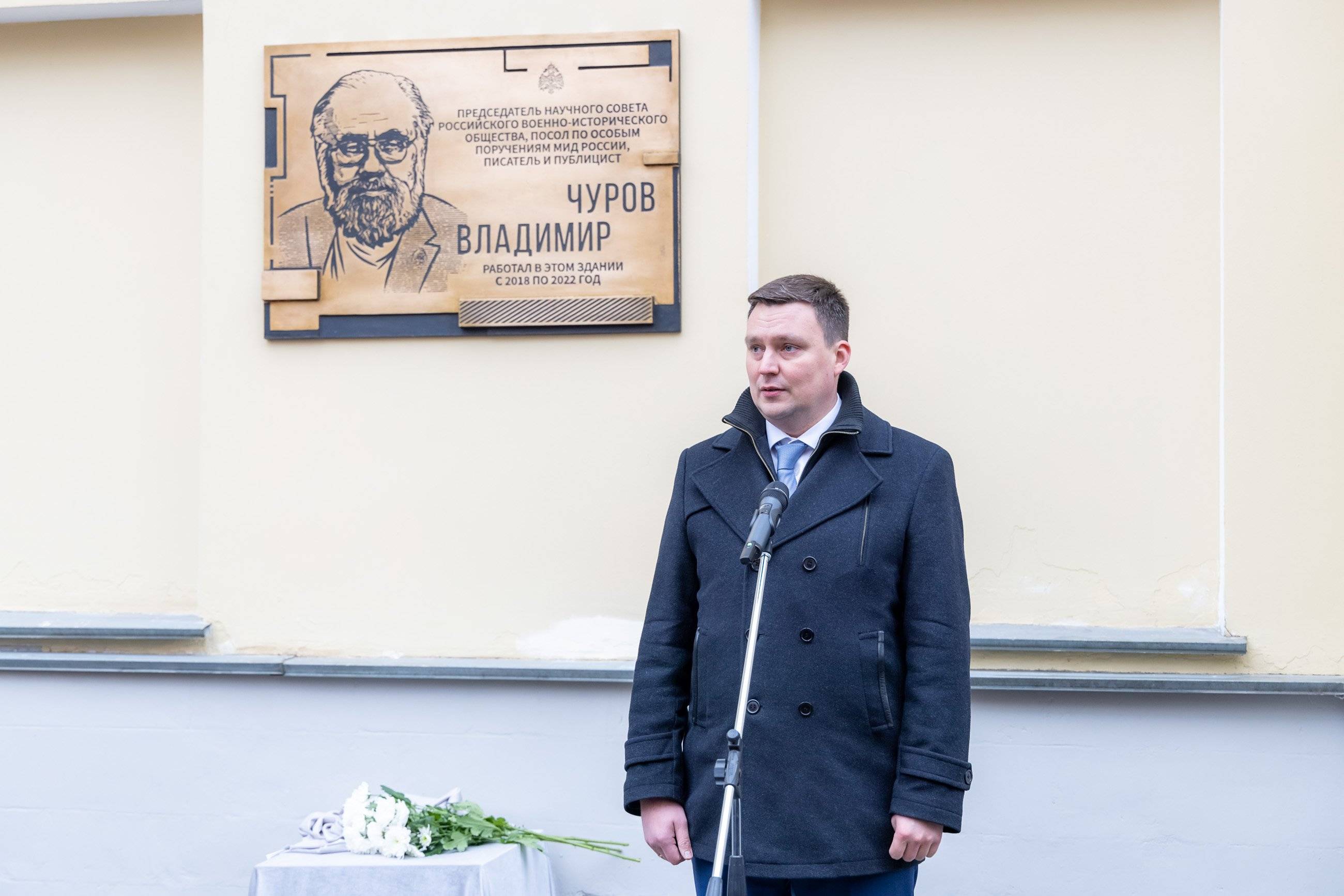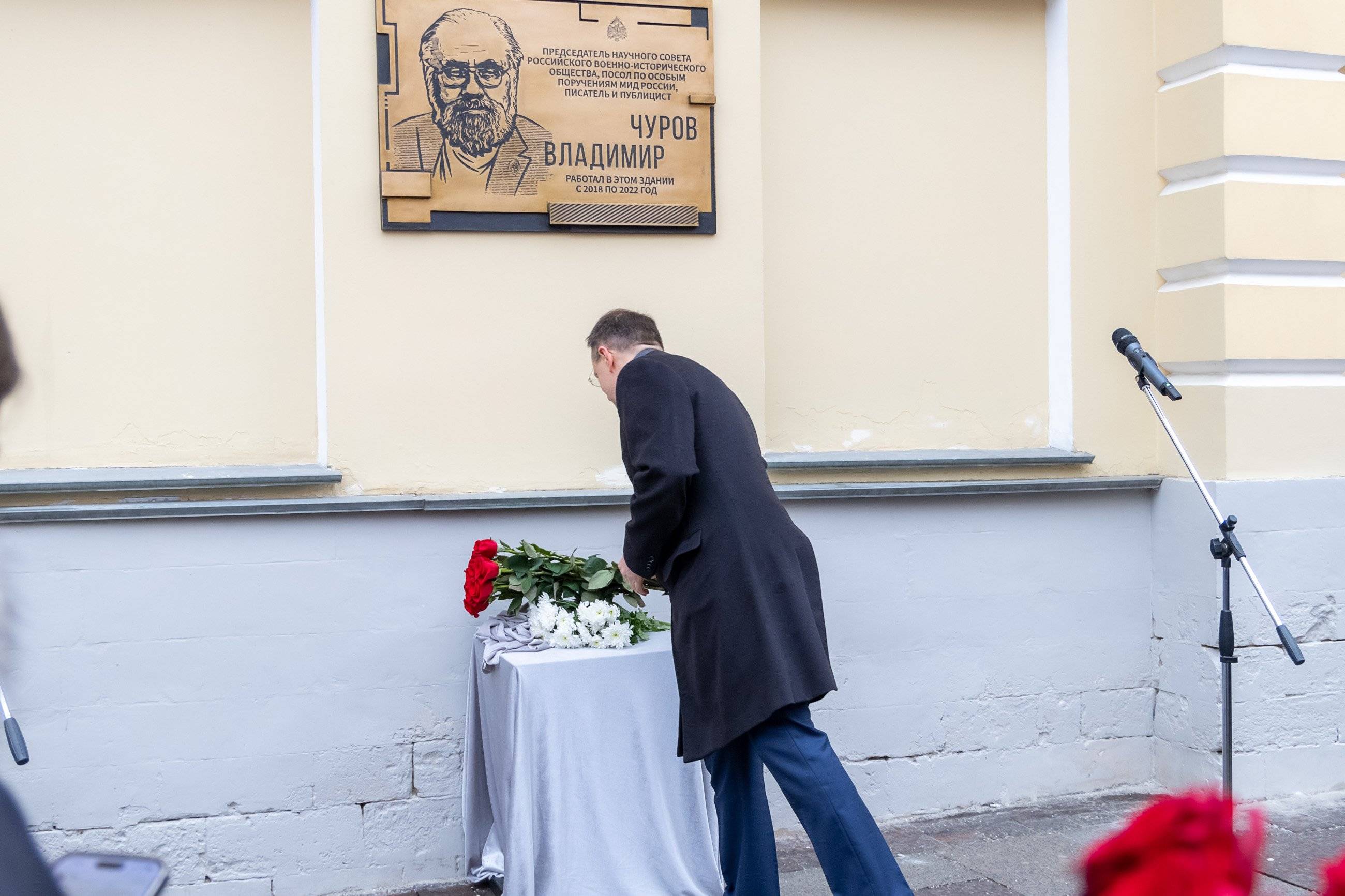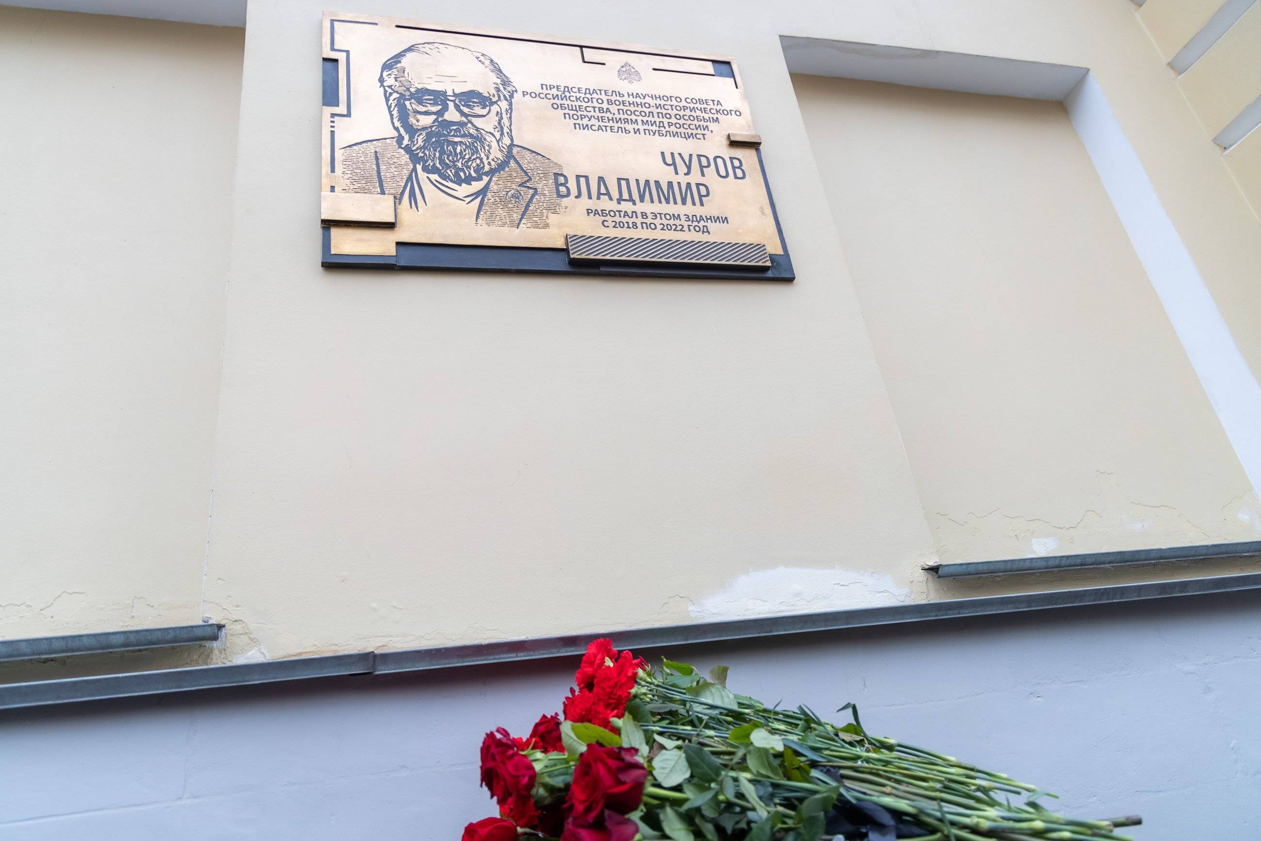 Сегодня в Москве состоялось торжественное открытие мемориальной доски Председателю Научного Совета РВИО, Послу по особым поручениям МИД России, писателю и публицисту Владимиру Евгеньевичу Чурову.
