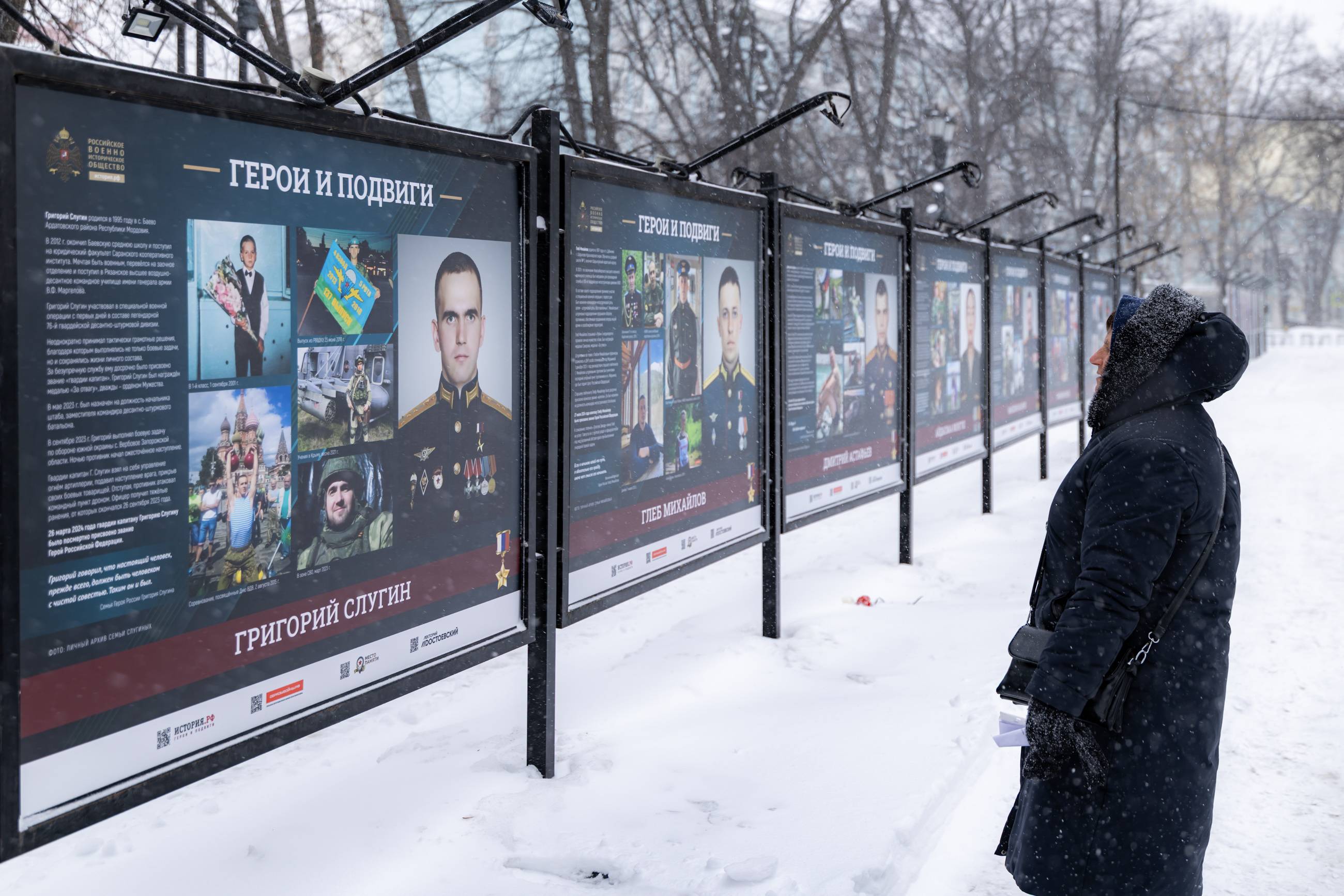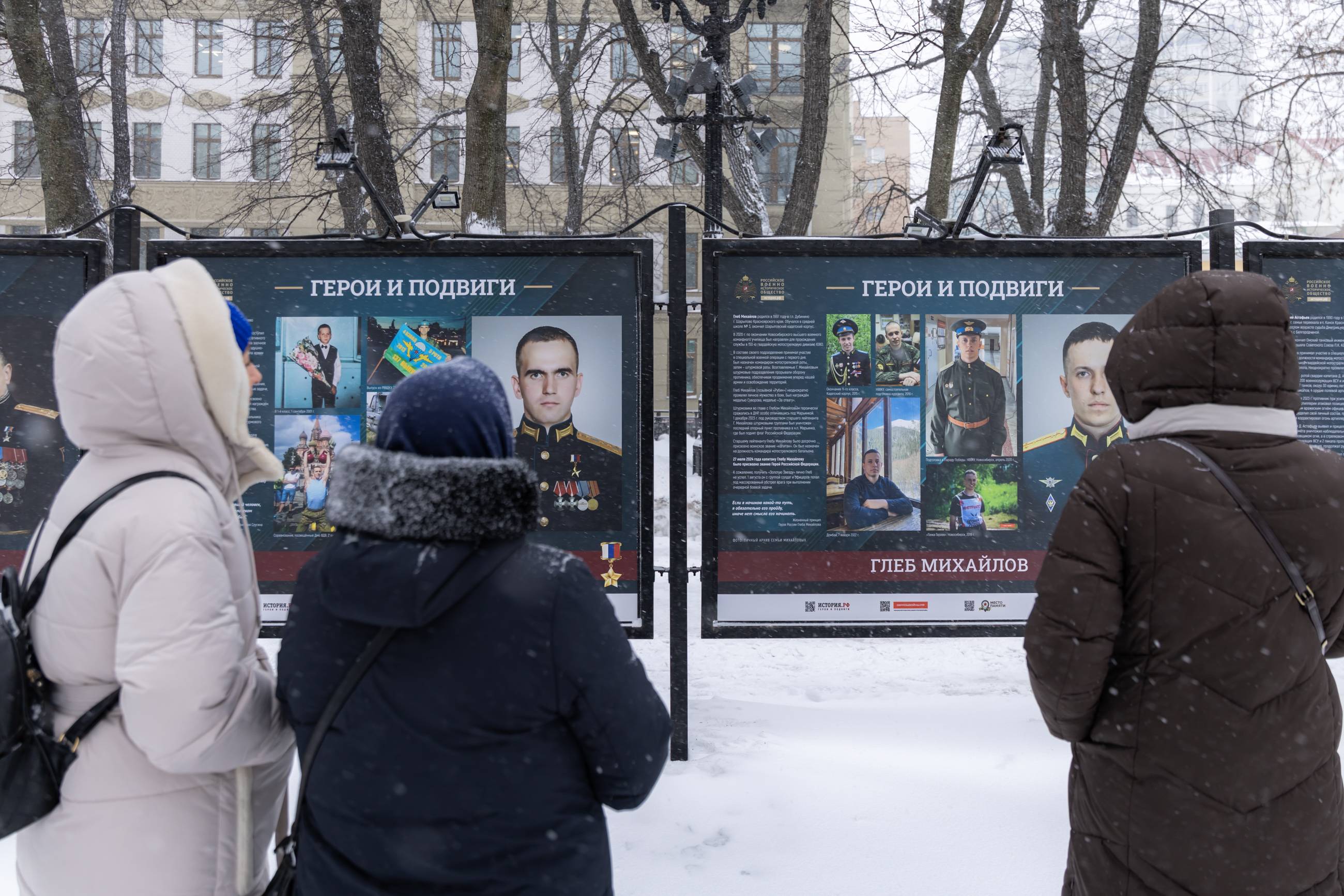 На Гоголевском бульваре выставка продлится до середины марта. Материалы уличных экспозиций из цикла «Герои и подвиги» также есть в онлайн-формате.