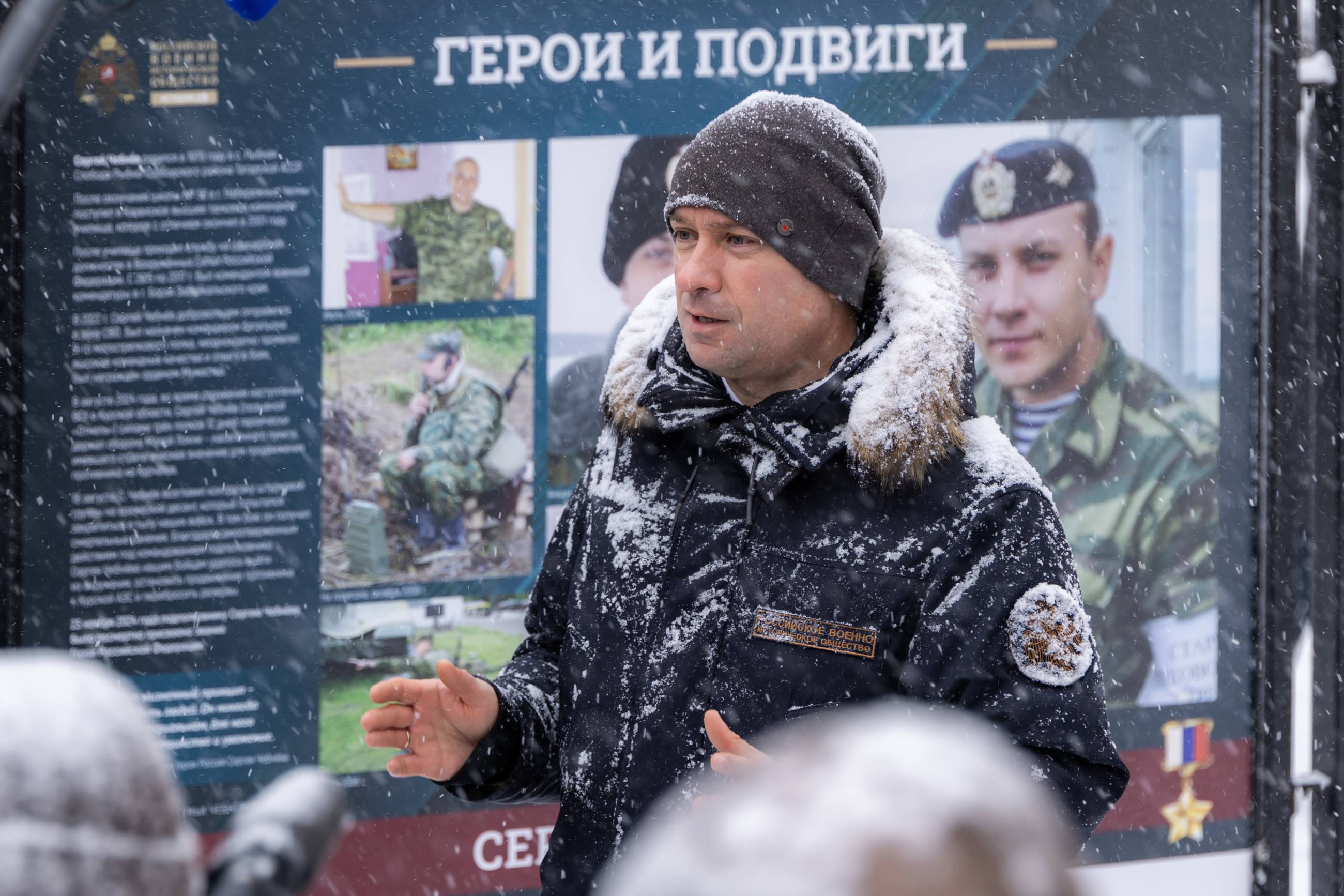 Один из стендов посвящен Герою России, подполковнику Сергею Чебнёву (позывной «Отмель»). В августе 2024 года командир мотострелкового батальона Сергей Чебнёв 12 дней силами трёх полков держал героическую оборону Малой Локни в Курской области. Населённый пункт имел стратегическое значение. Благодаря слаженным действиям удалось остановить продвижение превосходящих численностью сил противника к Курской АЭС. Сергей Чебнёв получил смертельные ранения. В декабре 2025 года на набережной Курчатова в Курской области РВИО был установлен памятник этому отважному командиру.