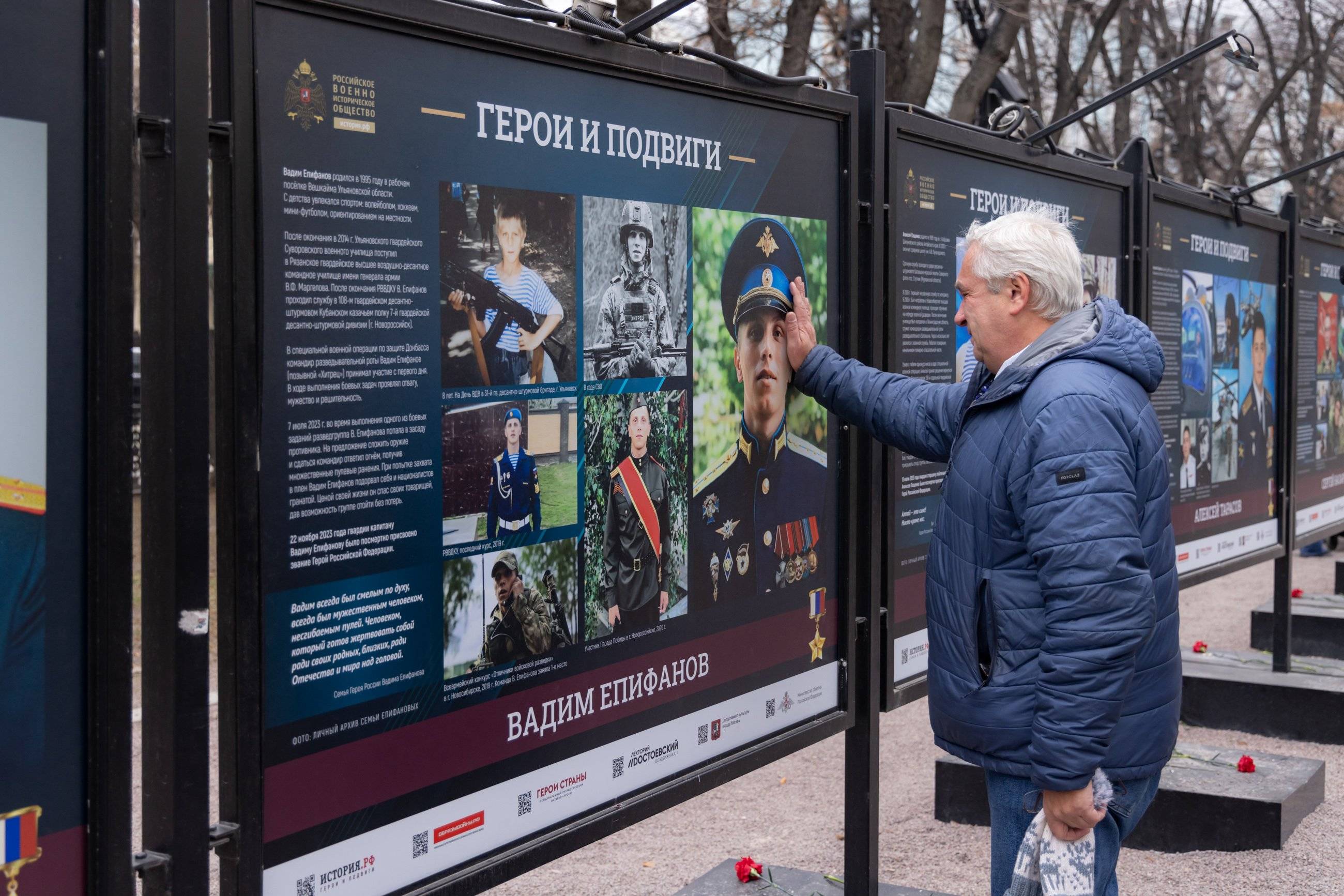 Сегодня на Гоголевском бульваре в Москве состоялось открытие пятой фотовыставки Российского военно-исторического общества «Герои и подвиги», посвященной современным Героям – участникам Специальной военной операции.
