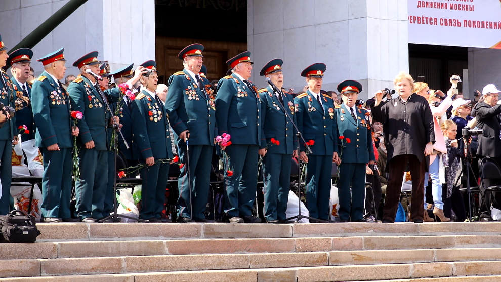 После напутствия началась музыкальная программа дня. Оперный и эстрадный певец Евгений Кунгуров впервые исполнил для широкой песню «Маршал Победы» о Георгии Жукове. Среди гостей праздника были ее авторы - творческий дуэт из Кемерово: поэт Геннадий Зенков и композитор Ильгизяр Даутов. Специально ради премьеры они приехали в Москву.