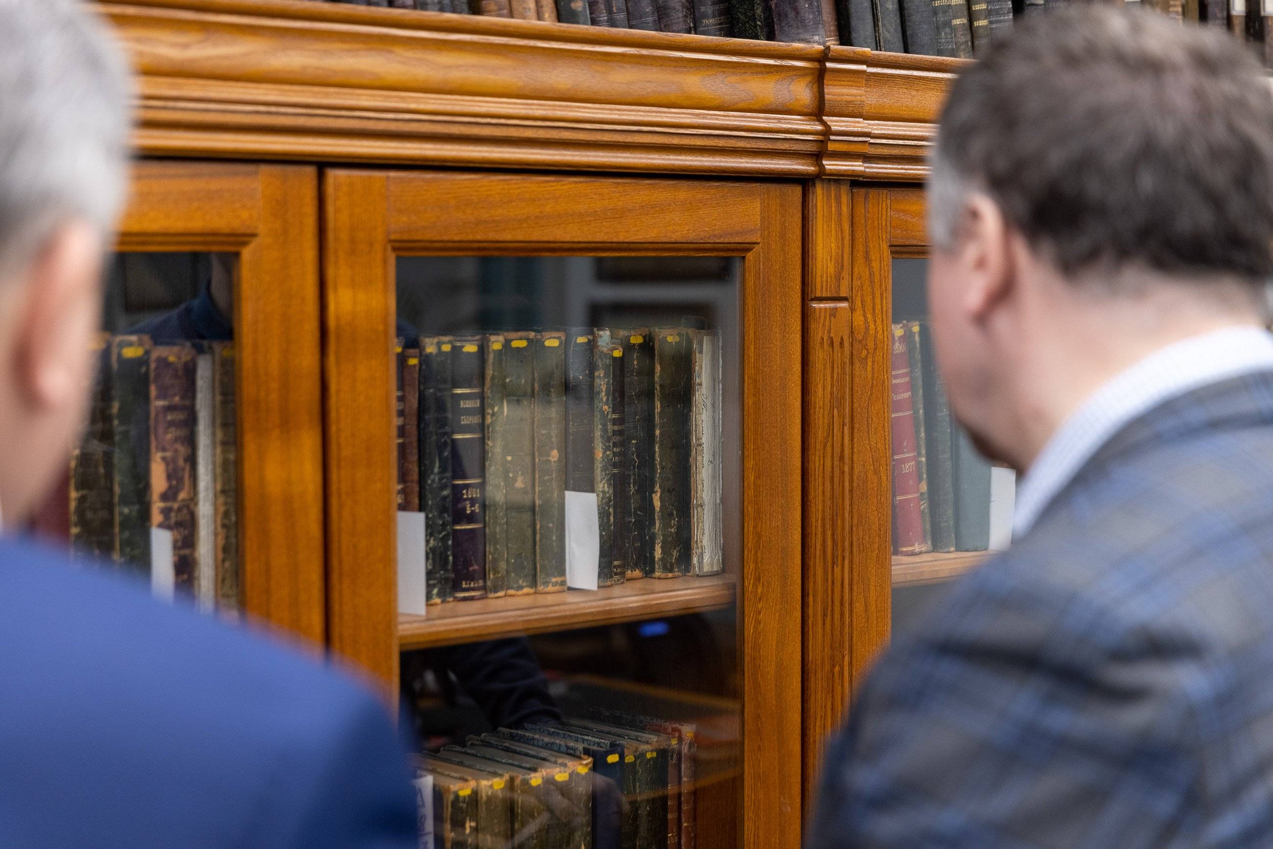 В неформальной части встречи Дмитрий Сокоушин осмотрел интерьеры Штаб-квартиры Российского военно-исторического общества, где сейчас проходит временная экспозиция живописных полотен Студии военных художников имени М.Б. Грекова. Также он посетил «Библиотеку военного историка», фонд которой насчитывает свыше 21 000 уникальных изданий по истории Российского Государства.