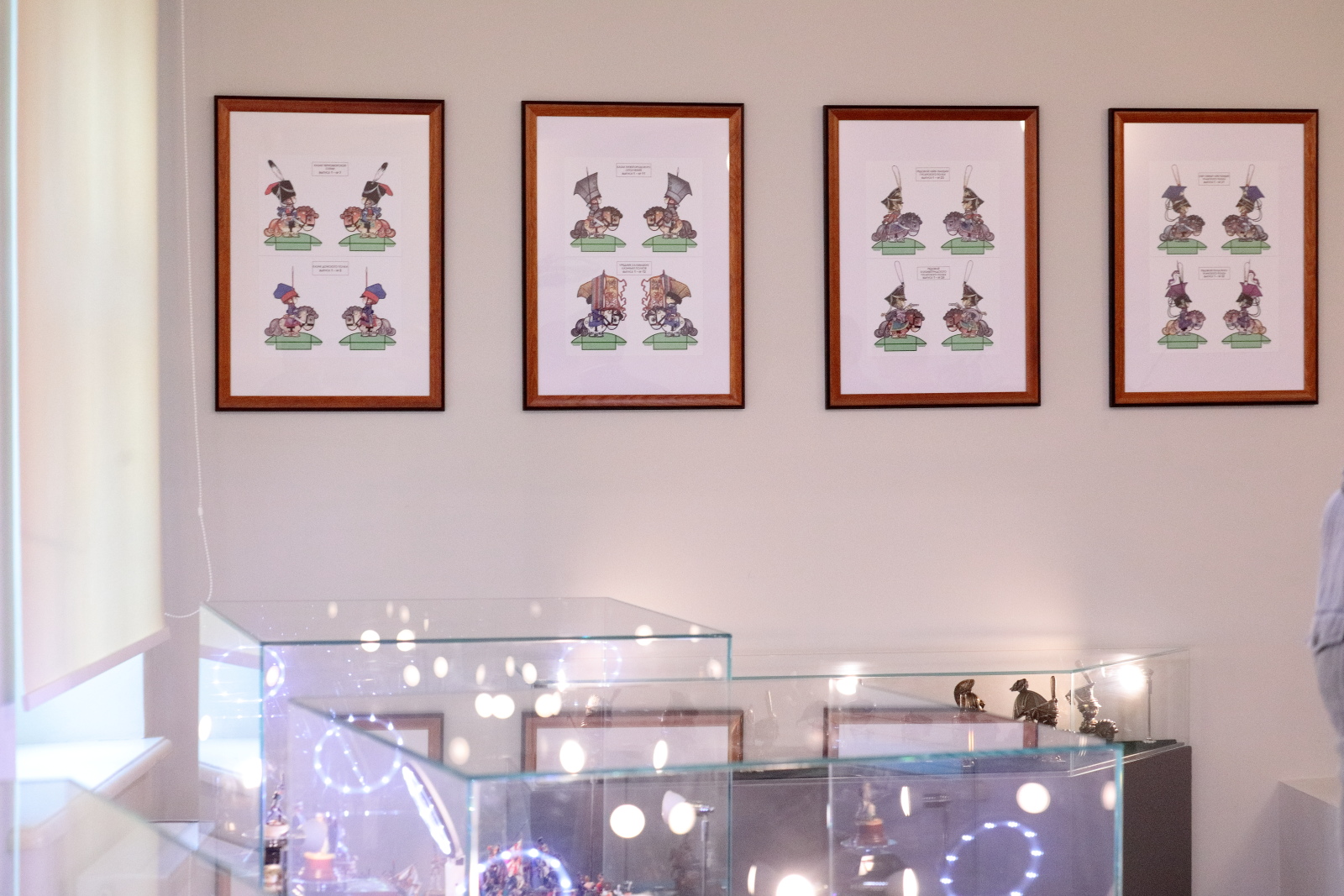 Ярким дополнением выставки стали работы Вячеслава Назарука, академика, лауреата Государственной премии СССР. Посетители смогут также увидеть авторские экземпляры бронзовых «мультяшных» солдатиков – участников Бородинского сражения.