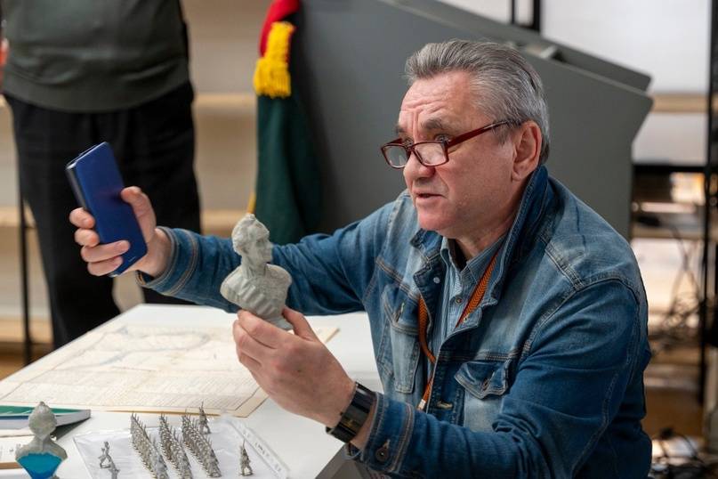 Вторая часть лекции прошла в Учебном центре Музея военной формы. На ней Михаил Преснухин уделил больше внимания реконструкторскому делу, используя экспонаты из своей коллекции: головные уборы, образцы формы, военную миниатюру. Также лектор продемонстрировал специальную литературу и собственные тщательно собранные законспектированные данные об итогах штурма 1790 года.