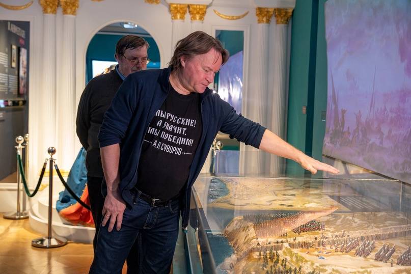 Первая часть лекции прошла в экспозиции Музея военной формы, в зале «Екатерина II». Слушатели погрузились в историю штурма крепости благодаря представленному в зале макету «Штурм Измаила», соавтором которого является Михаил Преснухин. Посетители узнали о видах участвовавших в сражении войск, о штурме единственной казематированной батареи Табия, о построении пехоты генералом-аншефом Александром Суворовым.
