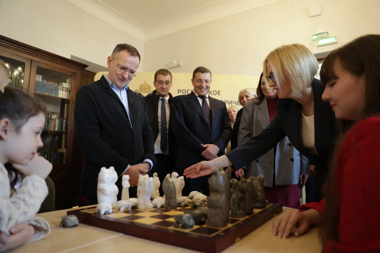 После официальной части мероприятия гости сделали несколько символических ходов за шахматными столами вместе с юными нижегородскими спортсменами.