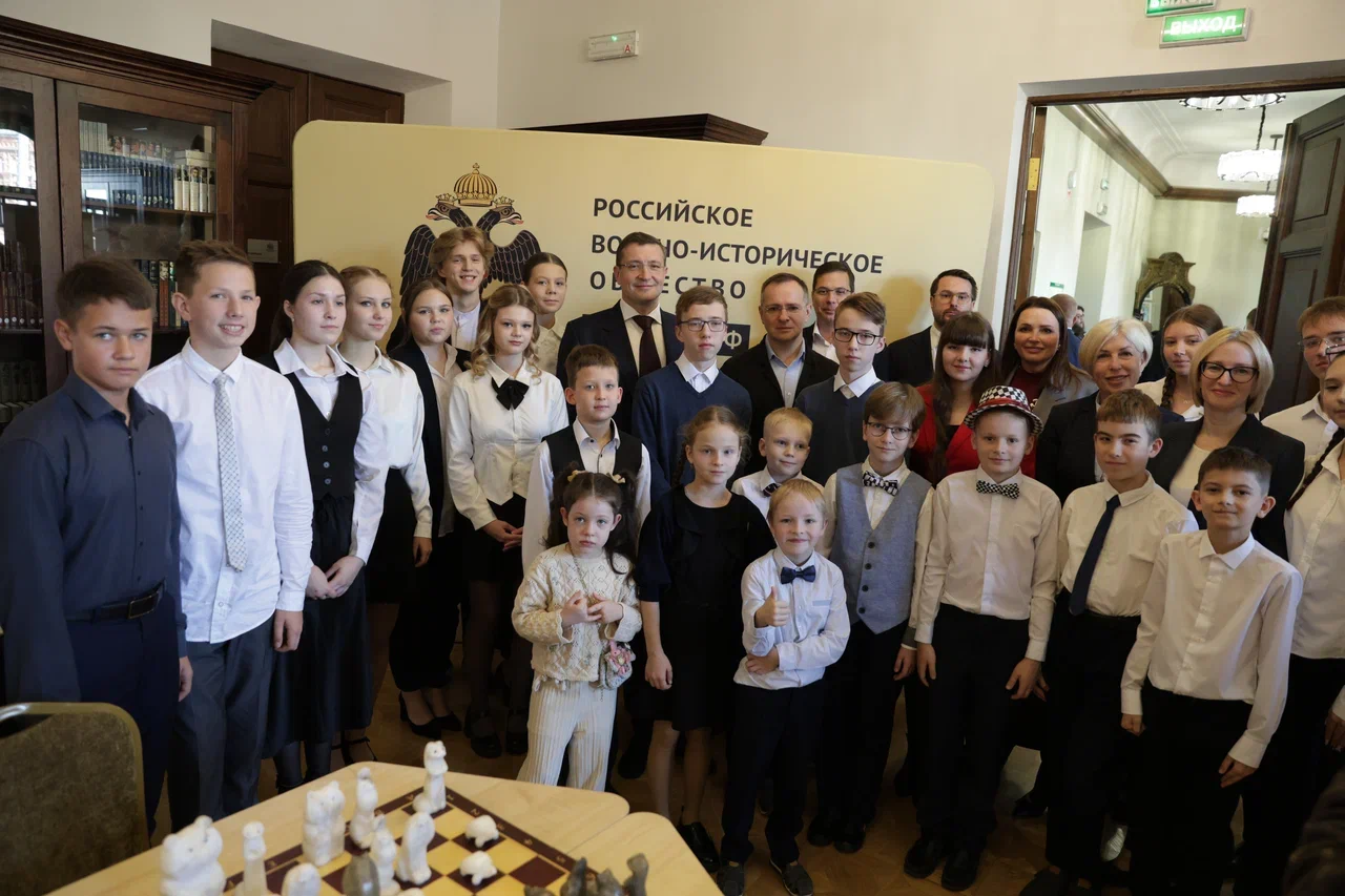 Сегодня в Нижнем Новгороде помощник Президента РФ, Председатель Российского военно-исторического общества Владимир Мединский и Губернатор Нижегородской области Глеб Никитин открыли новый Шахматный клуб под эгидой Российского военно-исторического общества (РВИО). Он разместился во Дворце детского творчества им. В.П. Чкалова.