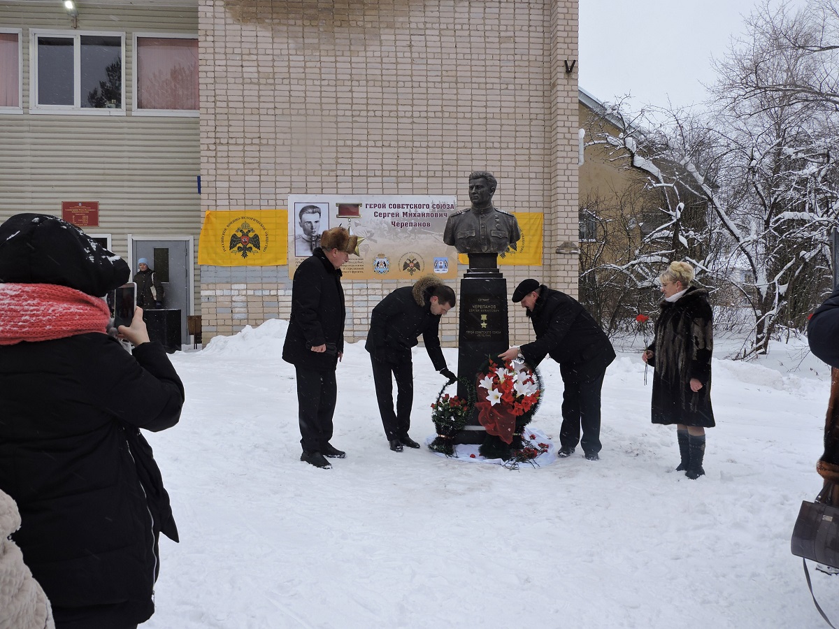 - По поручению Министра культуры Российской Федерации, Председателя Российского военно-исторического общества приветствую и поздравляю Вас с открытием Памятника-бюста Герою Советского Союза, сержанту Черепанову Сергею Михайловичу!