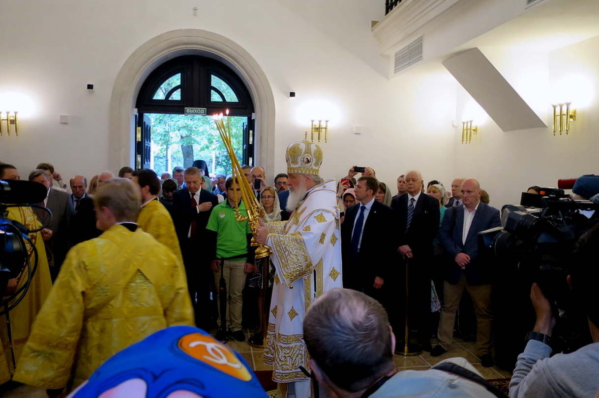 Сегодня произошло еще одно знаменательное событие - в праздник Рождества честного славного Пророка, Предтечи и Крестителя Господня Иоанна, Святейший Патриарх Московский и всея Руси Кирилл совершил освящение воссозданного храма Иоанна Предтечи у восточной стены Новодевичьего монастыря.