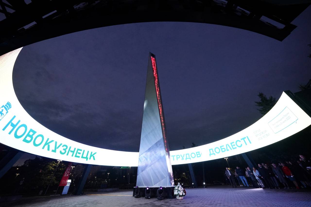 Концепция Новокузнецкой стелы и пространство вокруг представляют собой 17-метровую скульптурную композицию с панорамой трудовых подвигов новокузнечан гармонично вписалась в архитектурный стиль центральной части города. Вокруг стелы возведено «кольцо», внутри которого смонтированы светодиодные панели для демонстрации видеоматериалов. Снаружи расположены черно-белые рисунки с сюжетами военных лет. В стеле много металла, который подчеркнет специфику города металлургов.