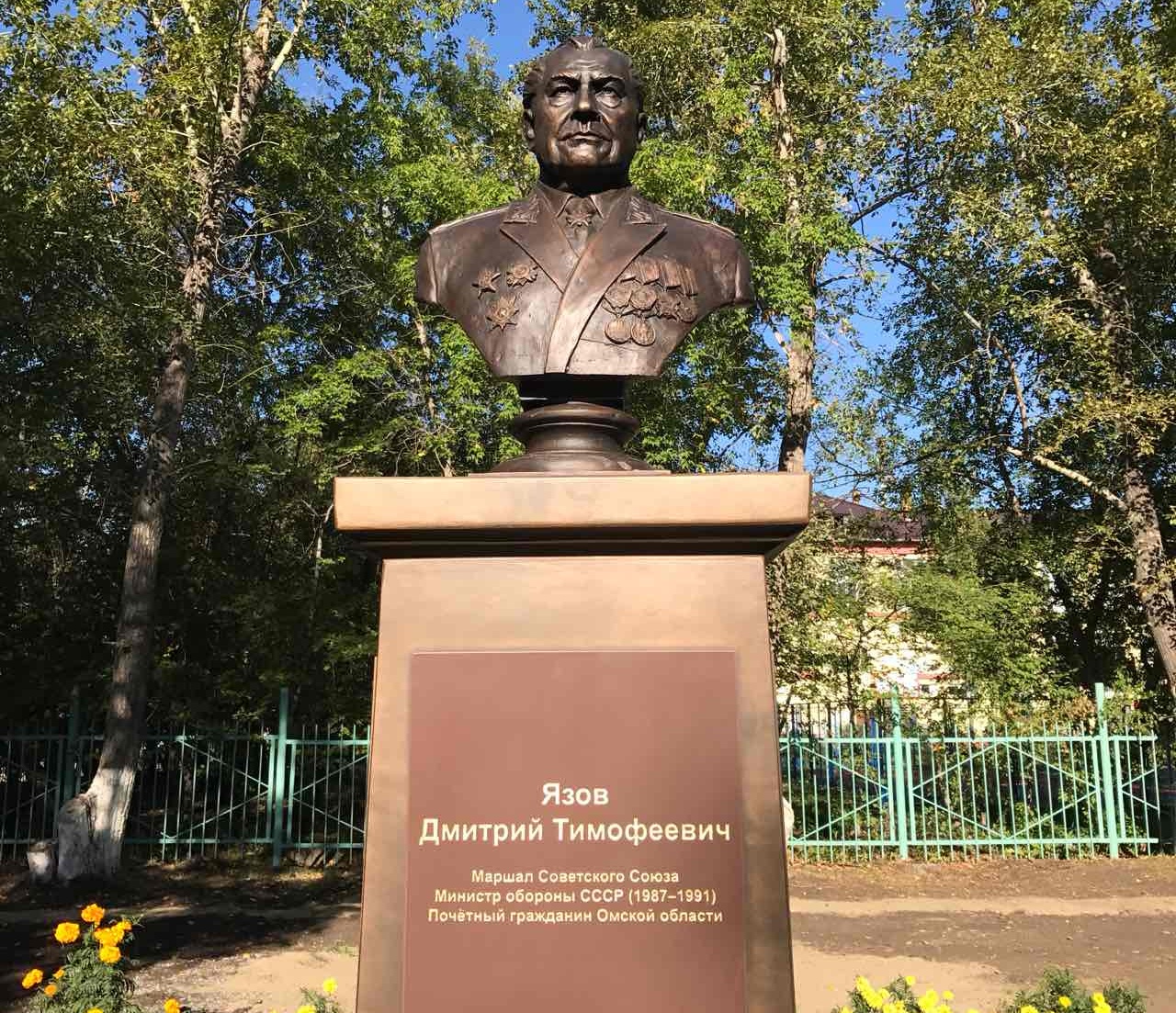 Бюст Дмитрия Язова был доставлен в Омск из московской мастерской скульптора Дениса Стритовича. В работе над созданием бюста приняли личное участие Советник Председателя Российского военно-исторического общества Ростислав Мединский и дочь Дмитрия Язова - Елена Лосик.