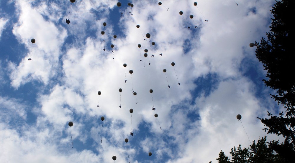 Завершился митинг возложением гирлянды памяти и цветов к подножию памятника и запуском в небо белых шаров.