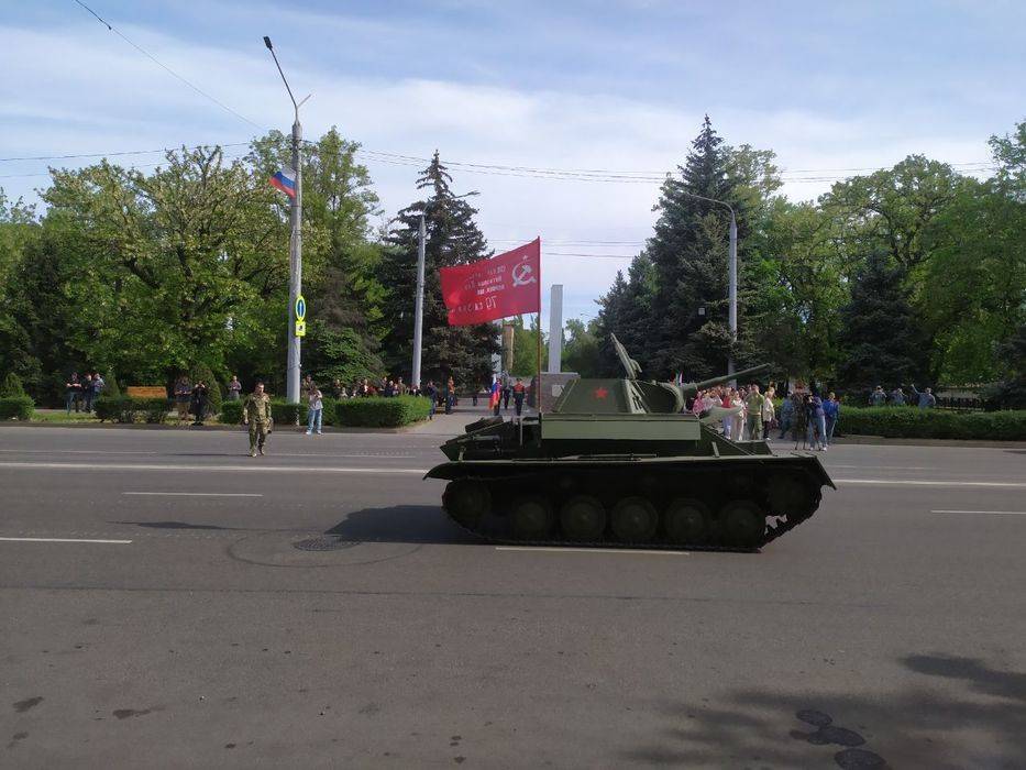 В ознаменование 79-ой годовщины Победы советского народа в Великой Отечественной войне мелитопольский танк Т-70 прошел своим ходом по центральной улице города.